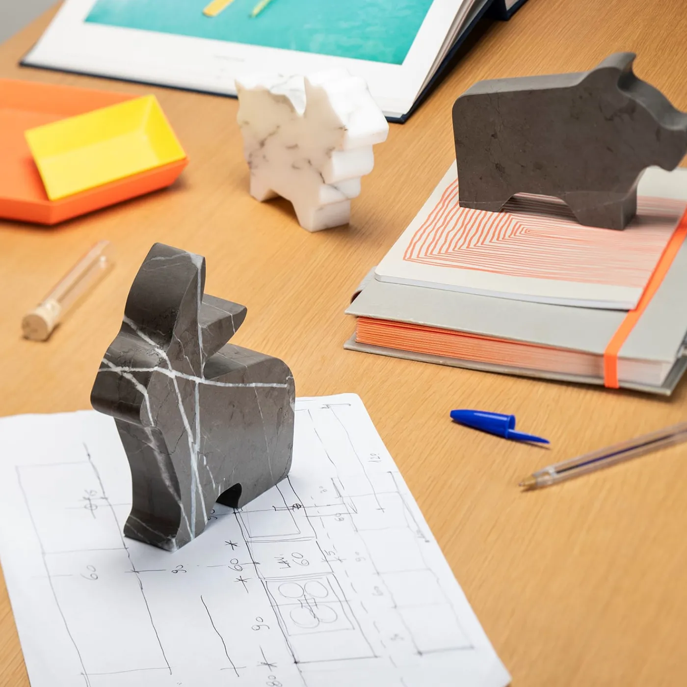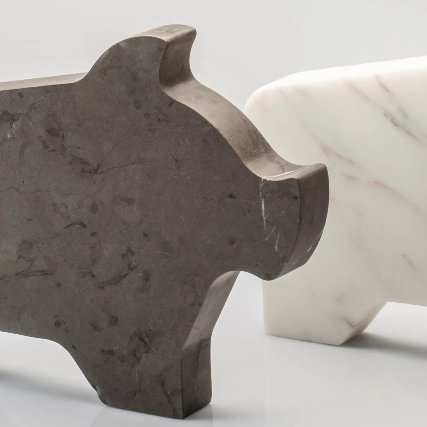 Parte della serie di allegre statuette Factory di Alessandra Grasso, questo splendido design decorerà in modo straordinario una credenza, una console o uno scrittoio con un fascino senza precedenti. Realizzato interamente a mano in marmo grafite e rifinito a mano, presenta una grande silhouette a forma di maiale che si abbina squisitamente alle altre forme di questa serie.