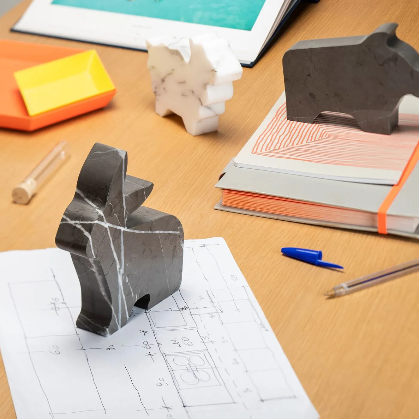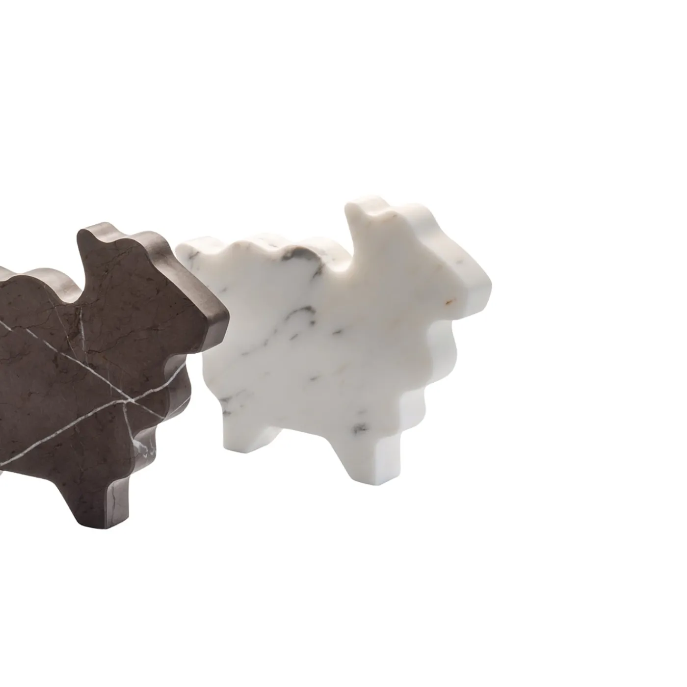 Una piccola pecora in marmo bianco di Carrara, questo disegno di Alessandra Grasso appartiene alla serie Factory di statuette e fermacarte a forma di animale. Abilmente lavorata e rifinita a mano, sarà un accento singolare e vivace su una consolle contemporanea, una scrivania o un tavolo da pranzo come targhetta. Disponibile in marmo grafite e in una versione più grande su richiesta al Concierge.
