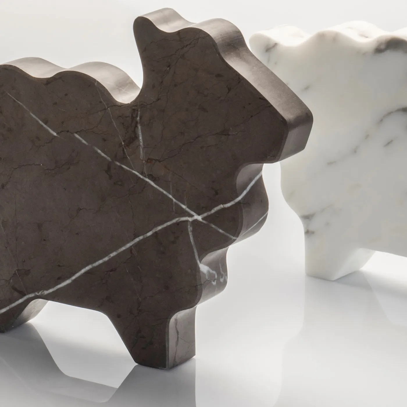 Giocosità ed eleganza sono superbamente sintetizzate in questa statuetta unica della serie Factory, che conta disegni originali a forma di animali della fattoria e realizzati a mano in marmi pregiati. Realizzato in marmo grigio Grafite e segnato da delicate venature, il pezzo è una soluzione artistica per ravvivare una superficie contemporanea spenta, sia come pratico fermacarte che come semplice elemento decorativo. Questa pecora è disponibile anche nella variante bianco Carrara e in due varianti più grandi.