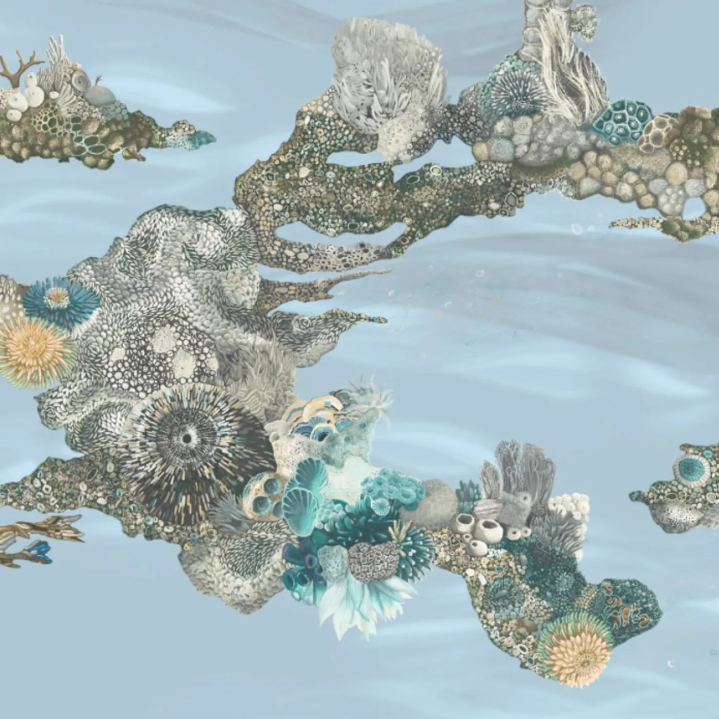 KOHRO Tessuto da rivestimento in poliestere Patch Reef blu chiaro> Carte Da Parati