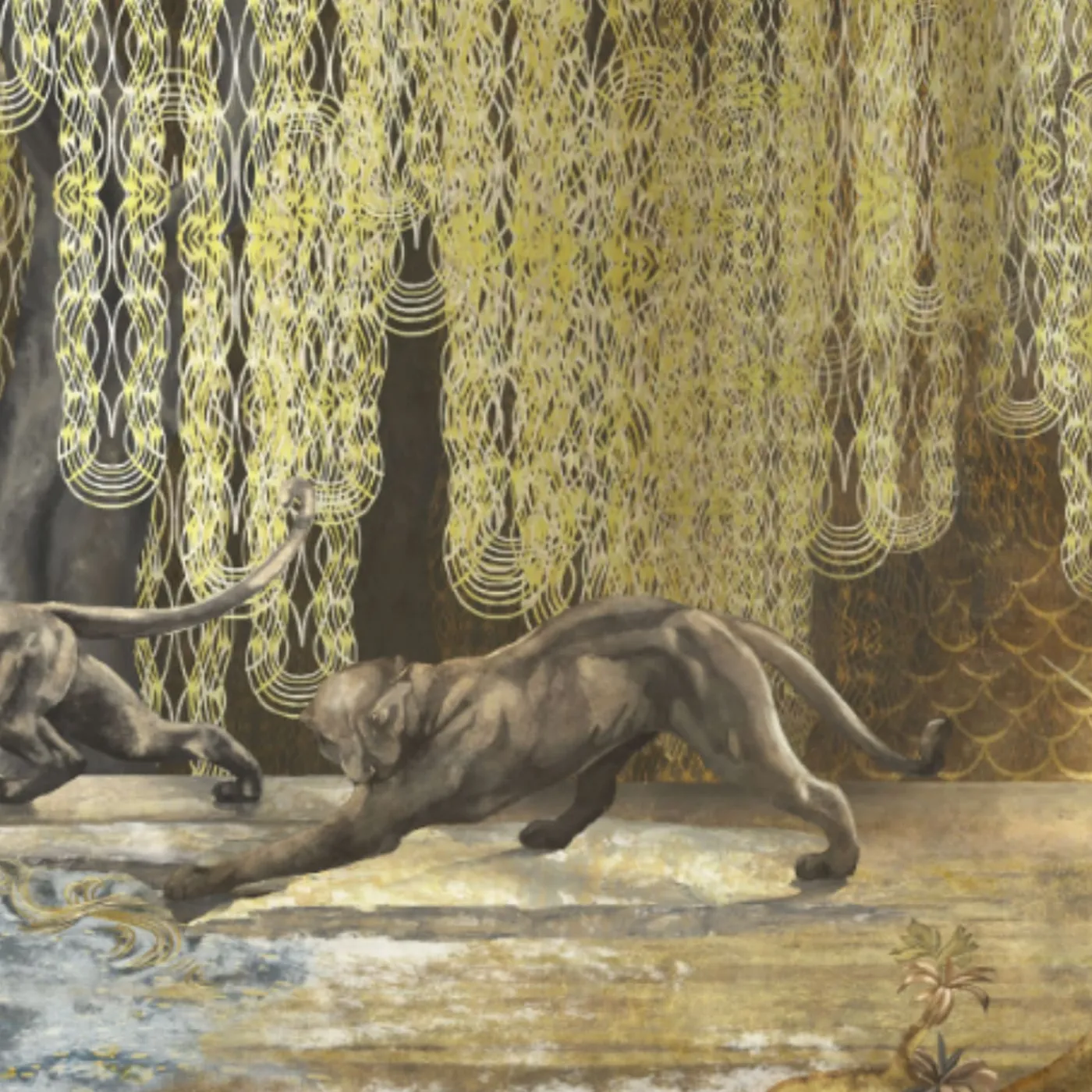 KOHRO Tessuto da rivestimento in poliestere Wildscape, nero e oro, scintillante> Carte Da Parati