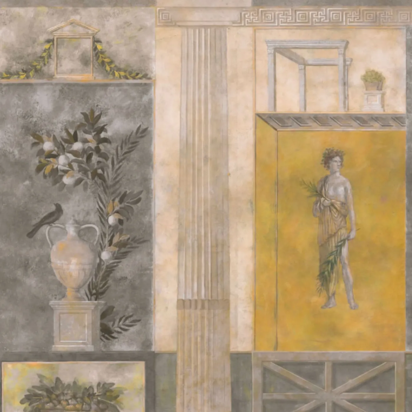 KOHRO Tessuto murale in cotone giallo grigio e beige Pompei> Carte Da Parati