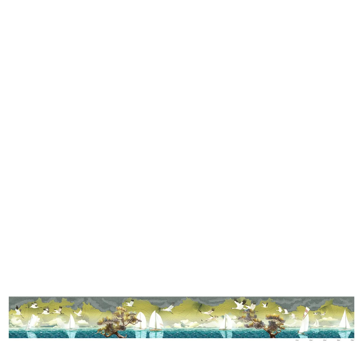 Il tessuto murale in poliestere Yellow & Blue Sea racchiude il fascino costiero della California. Il disegno trae ispirazione dallo stile narrativo Art Deco, evocando lo spirito dei manifesti di viaggio degli anni ’40 e ’50. Caratterizzato da una scena accattivante che contrappone oceano e cielo, barche a vela e aironi, questo tessuto è progettato per dare vita a qualsiasi interno. Realizzato con precisione, il tessuto satinato non solo migliora l’estetica, ma garantisce anche la traspirazione e l’assorbimento acustico, rendendolo ideale per creare un’atmosfera serena. La vivace variante di colore aggiunge un impatto visivo notevole, perfettamente completato da una gamma di cinque opzioni di colore disponibili. Il prezzo si intende al metro quadro e il pezzo è disponibile anche in un’altezza alternativa di 270 cm. Per ulteriori informazioni, contattare il Concierge.