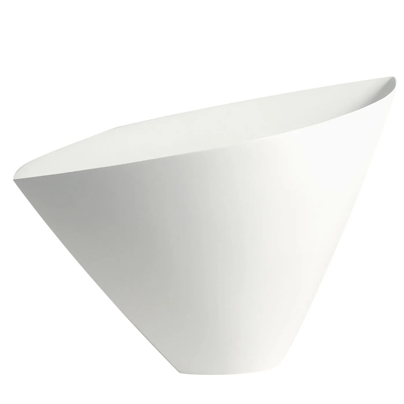 Un centrotavola decorativo di medie dimensioni, distintivo, con una finitura matte liscia e un design asimmetrico che unisce la modernità della semplicità a una sottile eleganza. La sua ampia apertura angolata e la base affusolata creano una silhouette sorprendente, ideale per ambienti interni minimalisti o come accentuazione per un centro tavola. Adatto per esporre composizioni di frutta o per essere utilizzato da solo come oggetto d’arte.