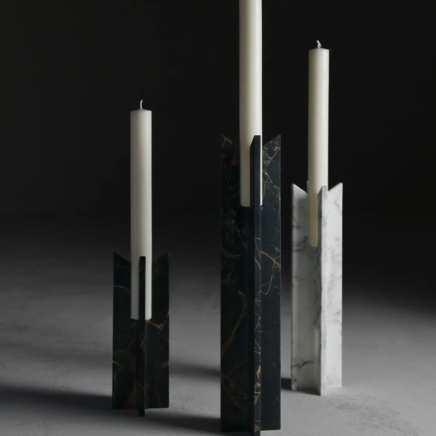 La collezione Trinity trasforma il motivo della croce in una raffinata forma tridimensionale. Composta da portacandele di altezza pari a 30, 40 e 60 cm, il design della base si inserisce in un quadrato, con elementi collegati senza soluzione di continuità attraverso una sottile lavorazione a raggiera del marmo. Quattro componenti in pietra naturale si ergono con grazia, caratterizzati da un taglio diagonale per fissare la candela. Ideale per spazi residenziali o di ospitalità, Trinity combina eleganza e meticolosità artigianale.