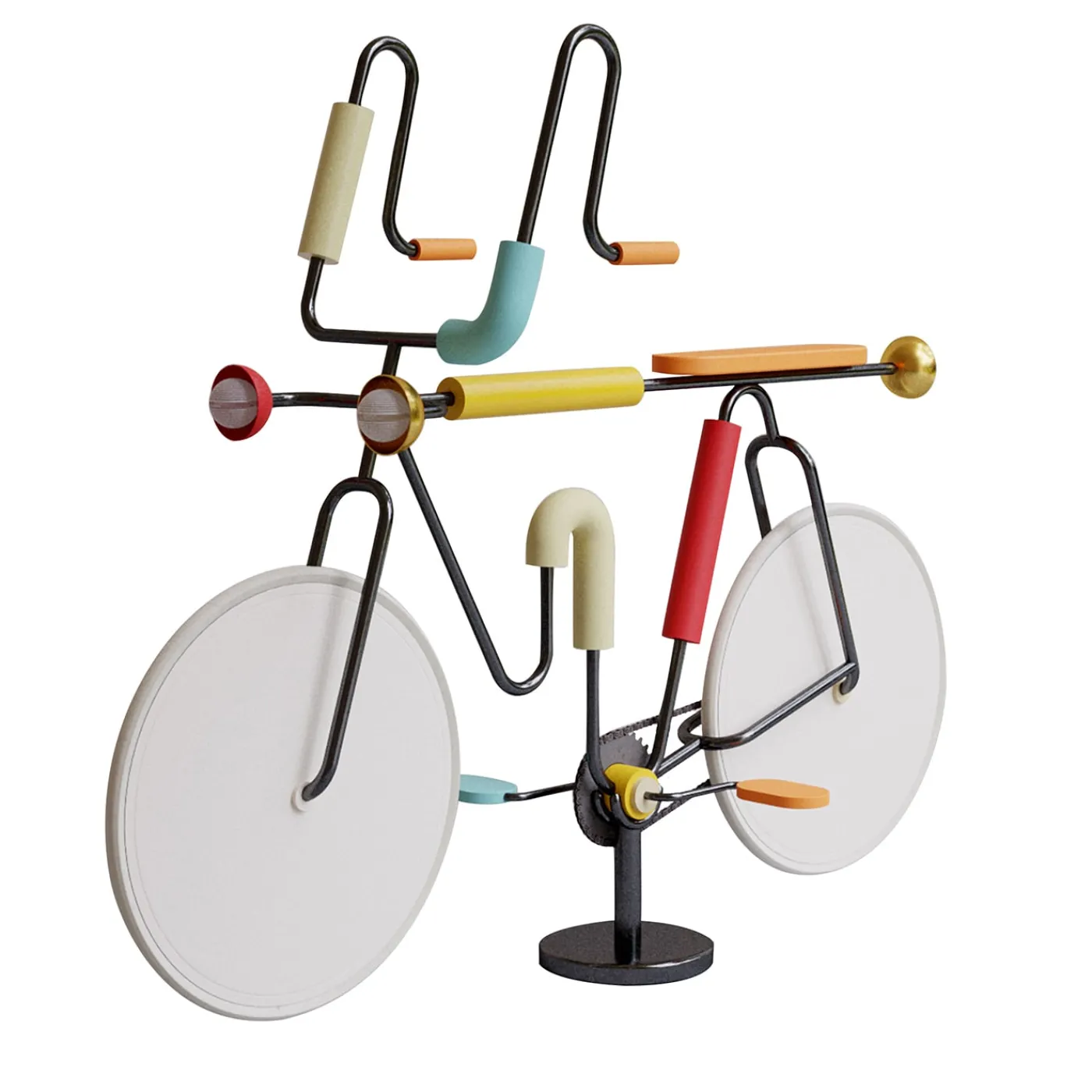 Questo design eccentrico della collezione Morse reinterpreta la silhouette di una bicicletta in una versione giocosa e drammatizzata, ricca di tubi colorati e riferimenti geometrici. Un’aggiunta superba a un interno contemporaneo in cui si vuole concentrare l’attenzione, questo design è disponibile in una vivace tavolozza di colori che accoppia arancione, azzurro, giallo, rosso, nero e oro.