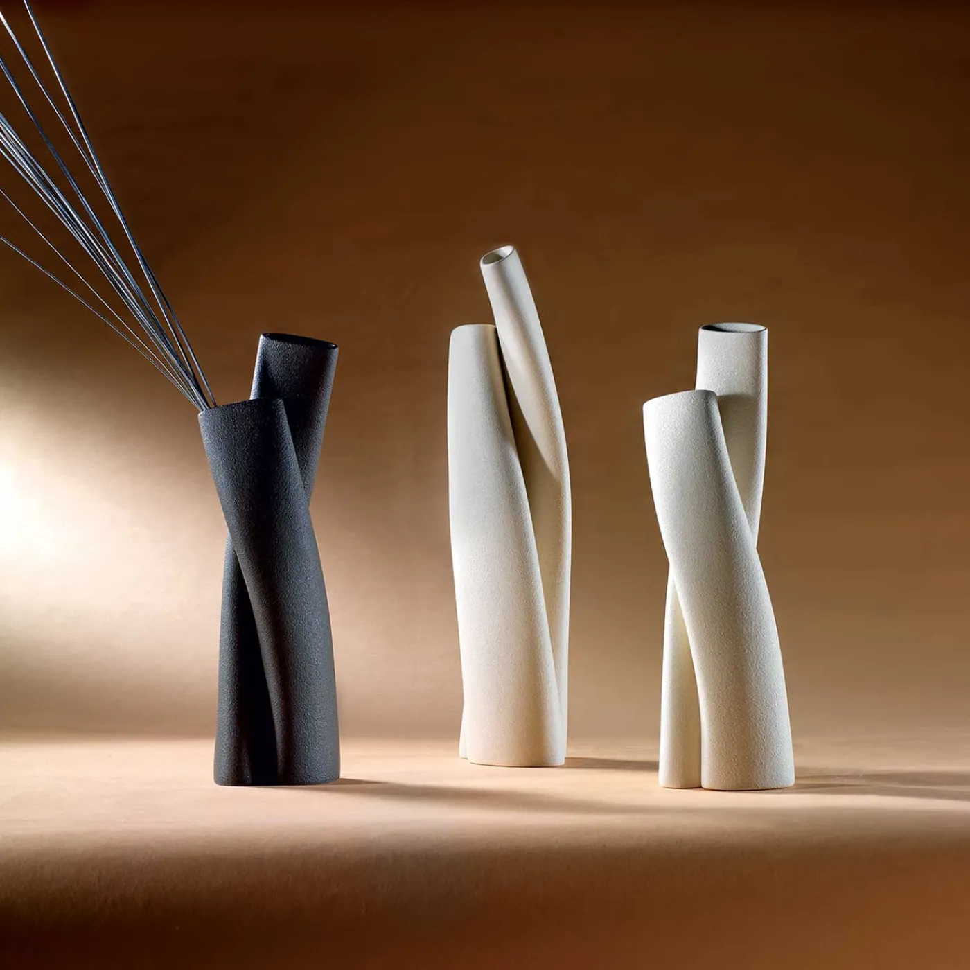 Un vaso sinuoso ed elegante che cattura lo sguardo. Comunica con forza la complicità e l’armonia dell’amore di coppia. Un pezzo modellato da abili artigiani per il piacere di averlo in casa e la soddisfazione di regalarlo.