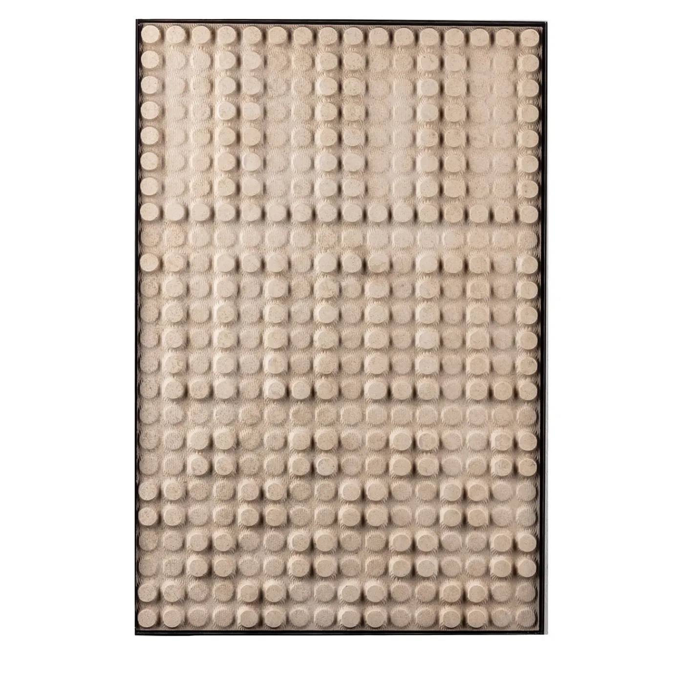 Greche in pietra Tunisi crema fa parte di un’esclusiva collezione di opere d’arte in pietra, che presenta superfici sviluppate nel tempo. Riflette la visione di designer come Michele De Lucchi, Marella Ferrera e Marco Piva, trasformando texture e geometrie in veri e propri capolavori. Incorniciato in metallo nero opaco, è facile da montare e si adatta a qualsiasi spazio. Omaggio all’artigianato Lithea, unisce tradizione e innovazione. Cornice inclusa.