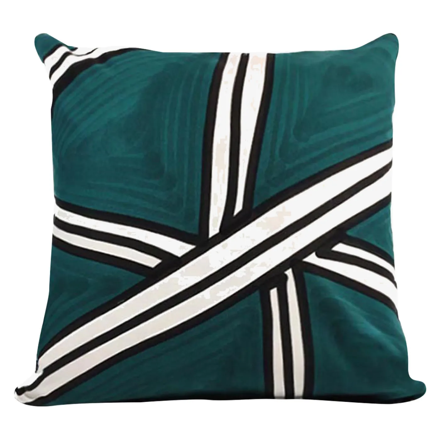 Cuscino interno a righe irregolari dipinte a mano. 100% cotone. Le righe verticali, orizzontali e oblique in bianco e nero sembrano un nastro che sta per essere annodato intorno a un regalo: questo cuscino elegante e confortevole con un rilassante sfondo turchese. Perfetto per tutti i tipi di arredamento, il suo motivo contemporaneo darà al vostro spazio un aspetto completamente nuovo.