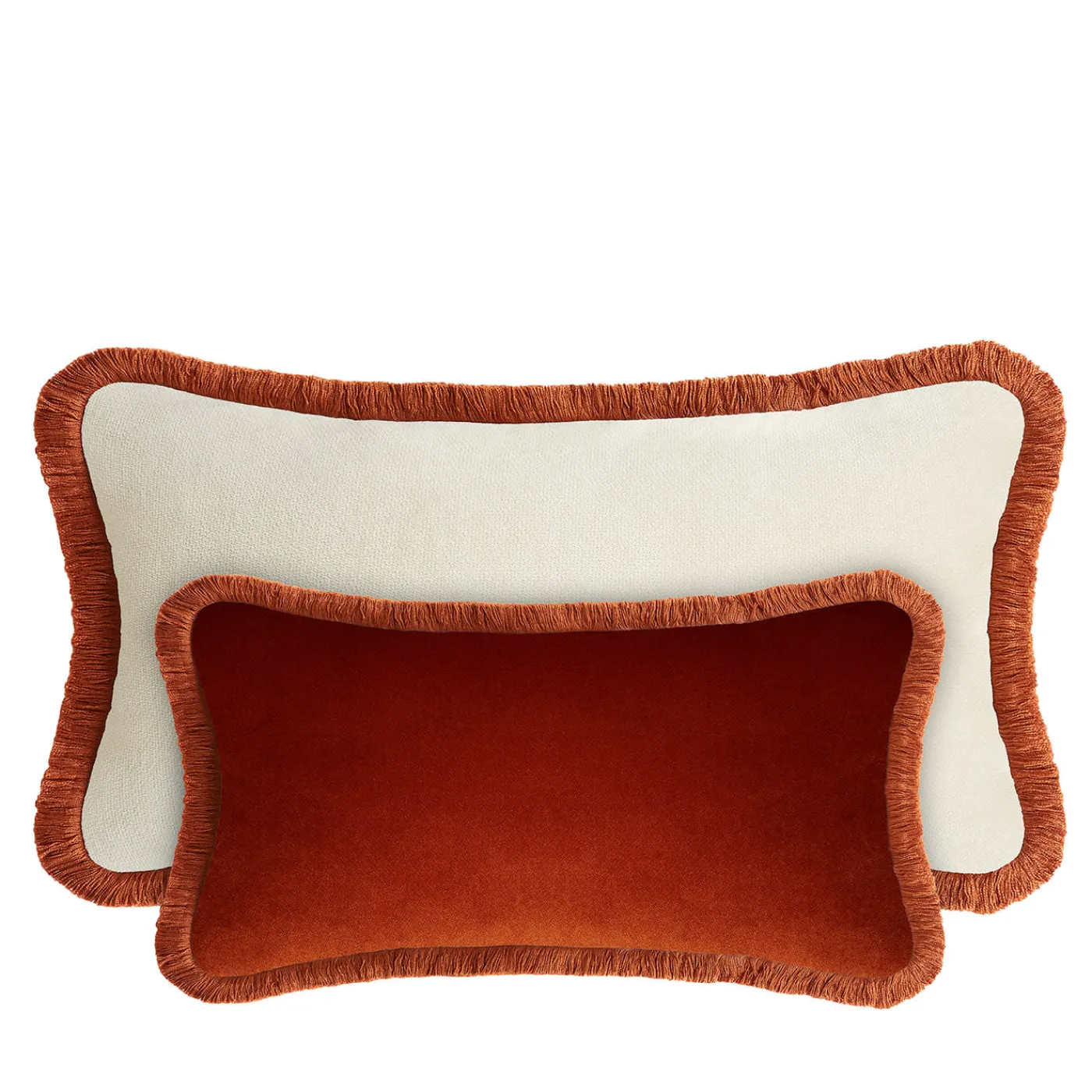 LO Decor Coppia di cuscini Happy in velluto bianco e rosso mattone a rettangolo> Cuscini
