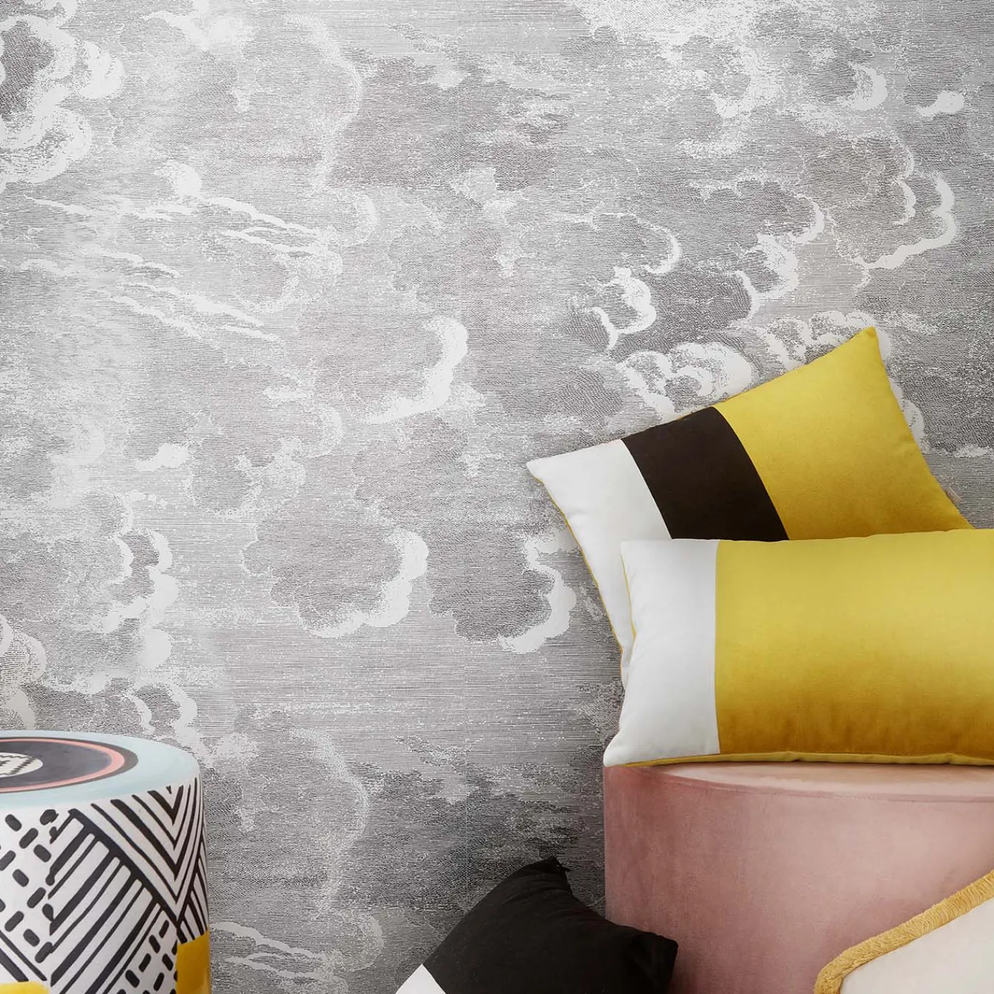 LO Decor Cuscino triplo bianco nero senape ottica – Sinistra> Cuscini