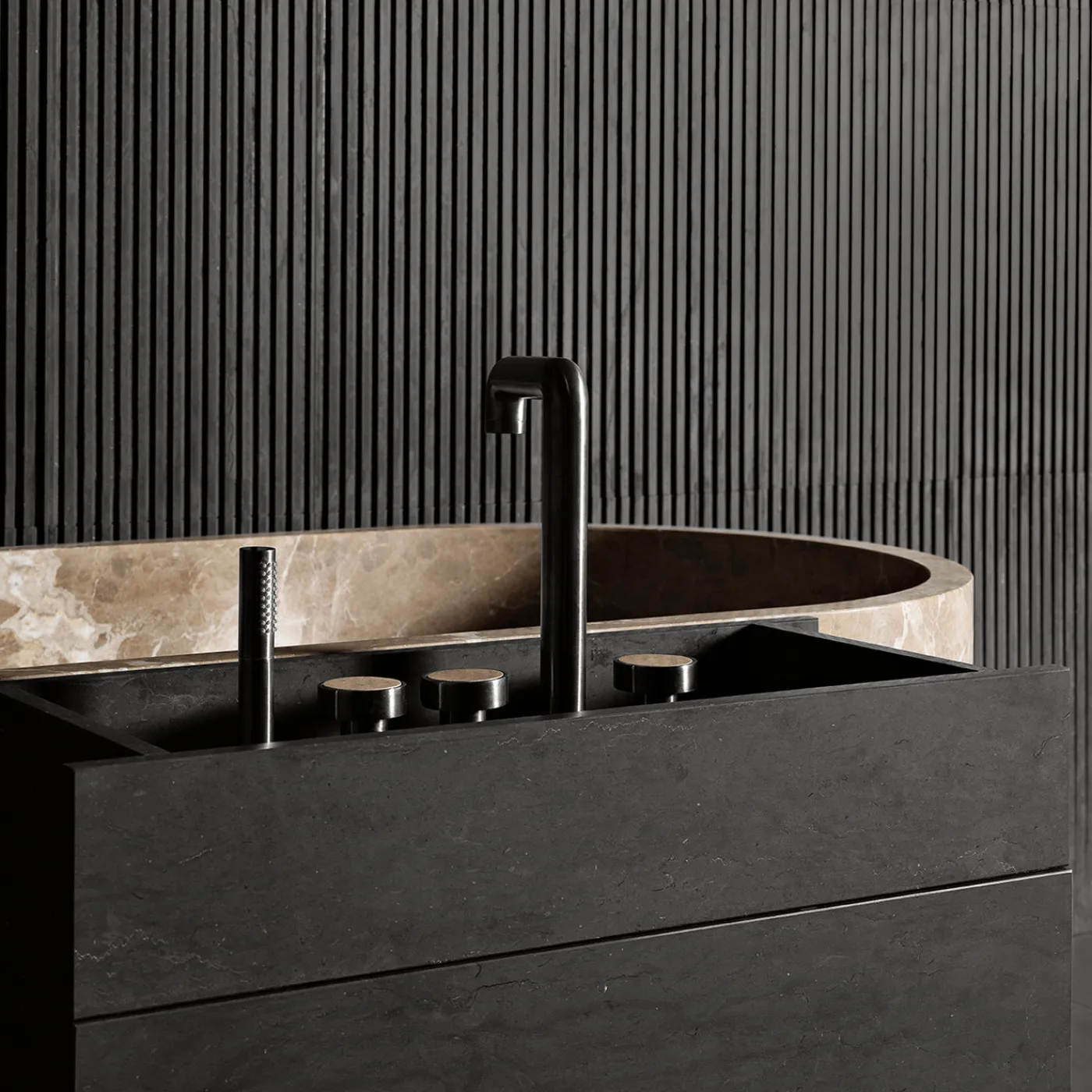 Il mobile contenitore Passage è progettato per completare la vasca da bagno ovale Passage con il suo volume monolitico e l’integrazione funzionale. Offre compartimenti in legno raffinato per uno stoccaggio organizzato degli essenziali personali e include un pratico porta-asciugamani laterale. Il design innovativo della lastra intersecante crea una superficie cava che fornisce uno stoccaggio accessibile riducendo al minimo il disordine visivo. La vasca da bagno Passage combina un design elegante in marmo raffinato con una funzionalità versatile, creando un punto focale raffinato per i bagni. Adatta per ambienti residenziali e di ospitalità, questa collezione combina elementi di contenimento versatili per una soluzione bagno distintiva e pratica.