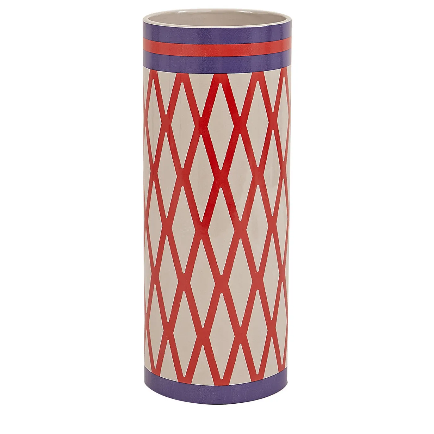 Vaso cilindrico ispirato alla stampa Marquise Carrè. Un complemento d’arredo in cui geometria e colore si fondono per creare un oggetto esclusivo.