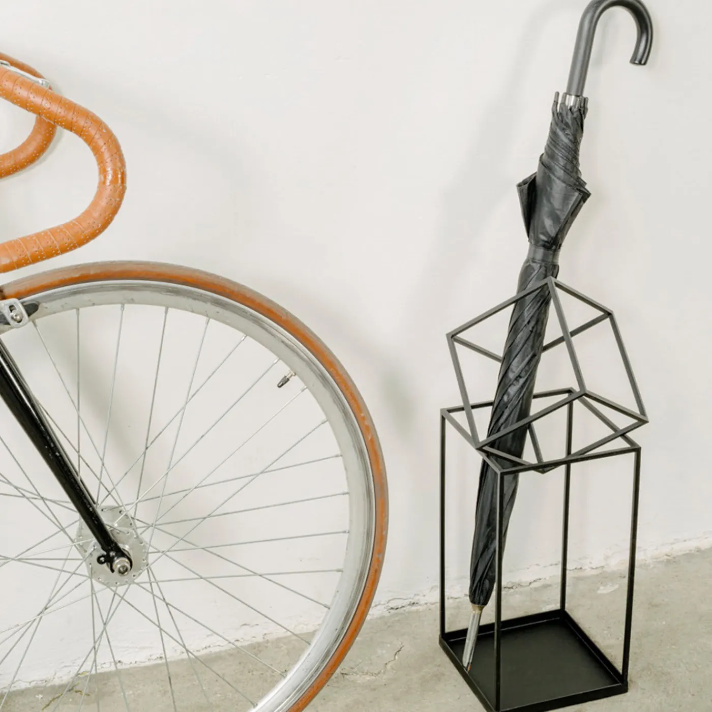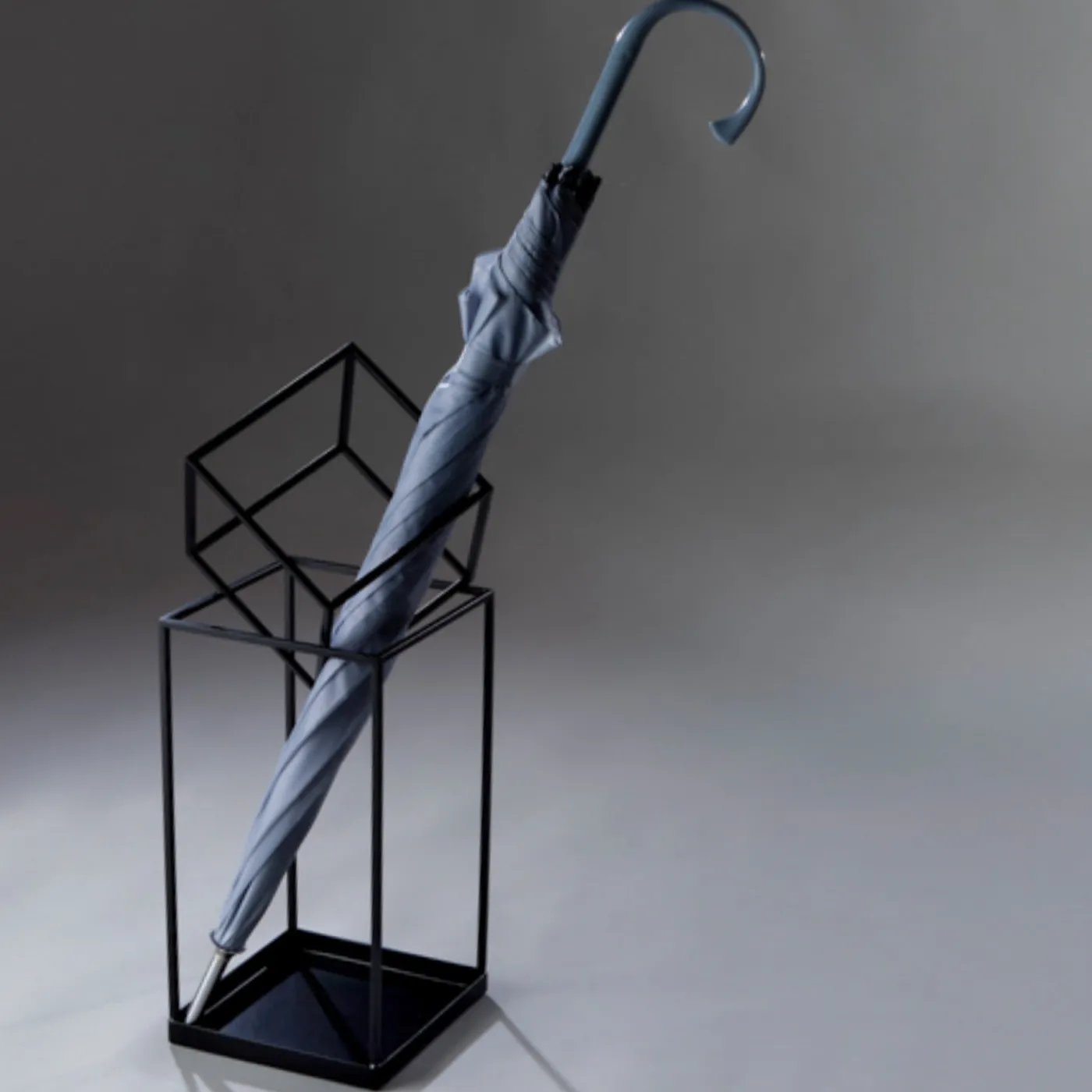 Design minimalista e moderno, questo portaombrelli vanta un design intrigante e scultoreo, che trova la sua massima espressione nel portariviste Who’s Next, entrambi tributo al leggendario gruppo rock britannico The Who. Realizzata in metallo nero verniciato a polvere, la sottile struttura tubolare è definita dagli spazi positivi e negativi derivanti dal gioco delle due forme geometriche che la compongono. Un cubo è in equilibrio – apparentemente precario – su un parallelepipedo, creando linee di intersezione su cui poggiano gli ombrelli.
