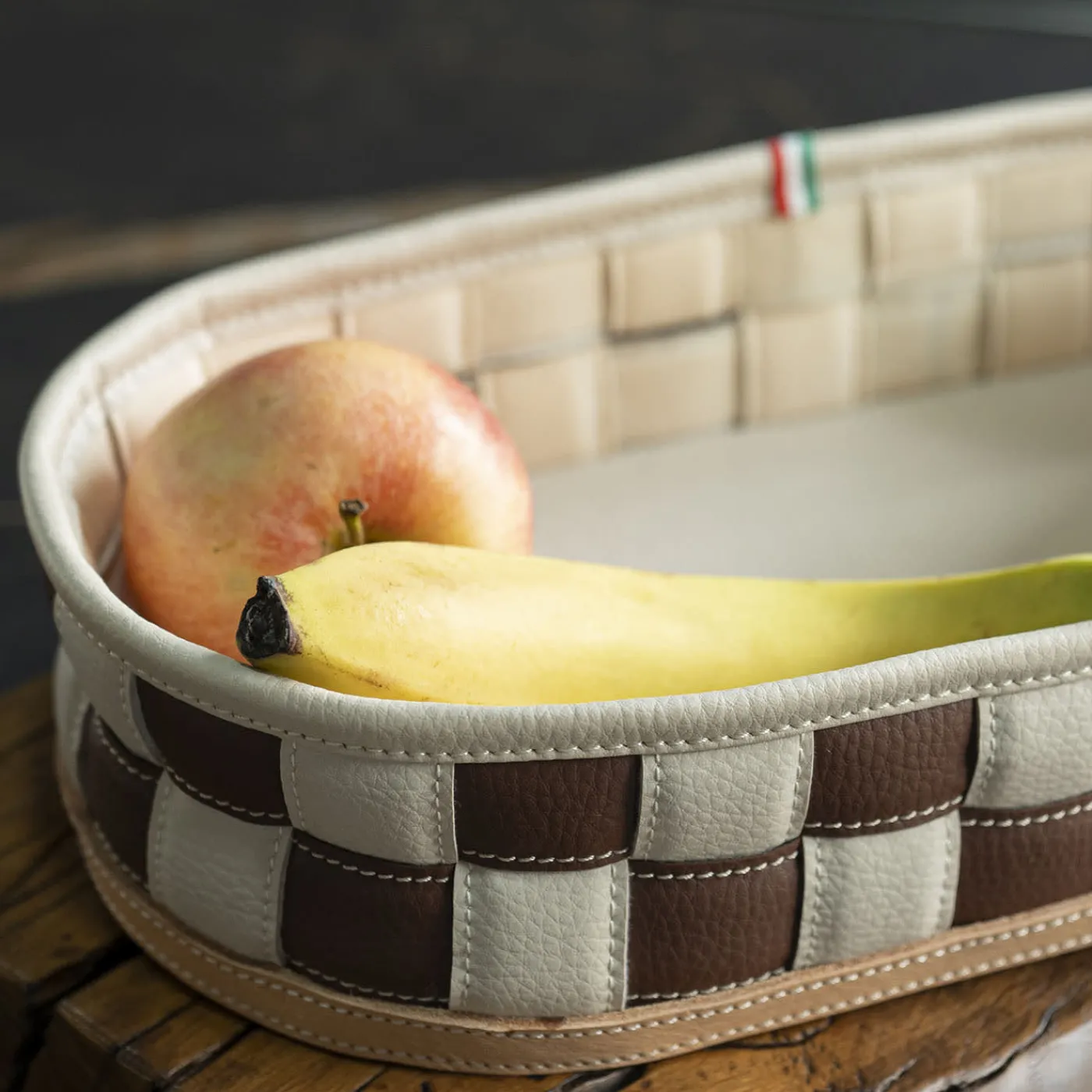 Una soluzione sofisticata per raccogliere le chiavi o le monete quando si torna a casa, questa videopoche ovale è una vetrina di stile sartoriale. L’ecopelle nei toni contrastanti del marrone e del crema è ordinatamente annodata in un design a quadri regolari che richiede semplicemente attenzione senza mai perdere la sua classe. Il fondo rigido massimizza la stabilità. Nel catalogo Artemest sono disponibili diverse varianti di dimensioni e colori.