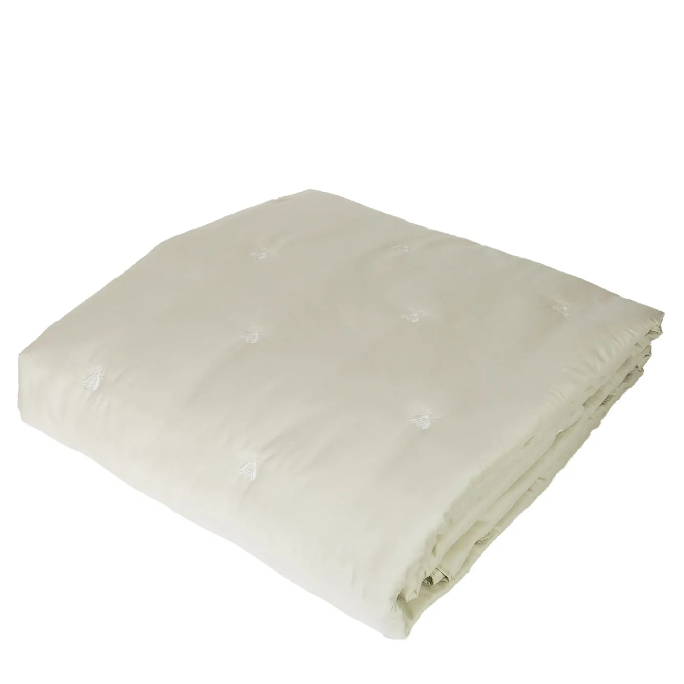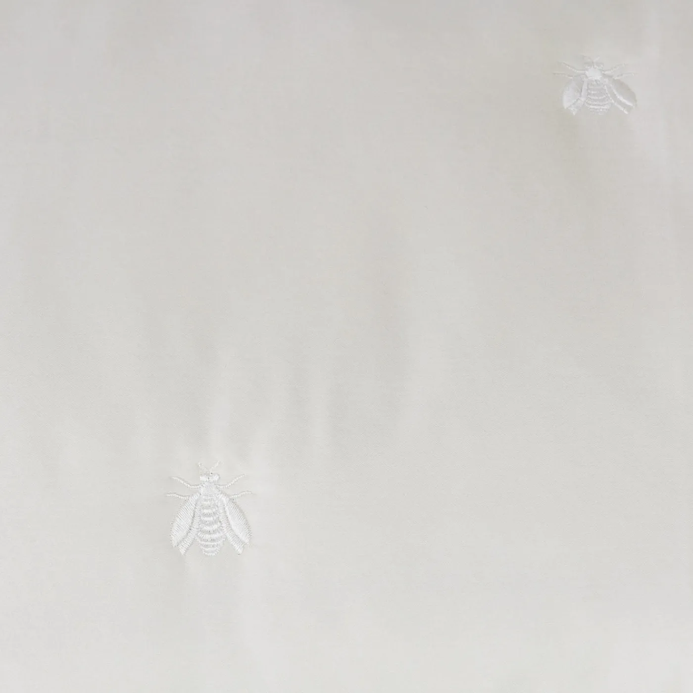 Il copriletto Api è realizzato in satin avorio luminoso, offrendo una finitura liscia e lussuosa. Embellito con raffinati ricami a forma di ape, unisce ispirazione classica ed eleganza contemporanea, rendendolo un accento distintivo per un ambiente camera da letto sofisticato.