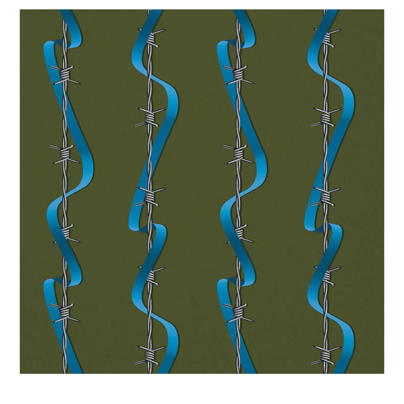Contrapponendo il filo spinato alla morbidezza di un nastro di seta, Gjoen crea una giustapposizione di due elementi che si intrecciano. Amore contro odio, bene contro male. La storia di bellezza e dolore ci mostra l’infinito intreccio dei due elementi. I due elementi creano una nuova alleanza di speranza e di incertezza.
