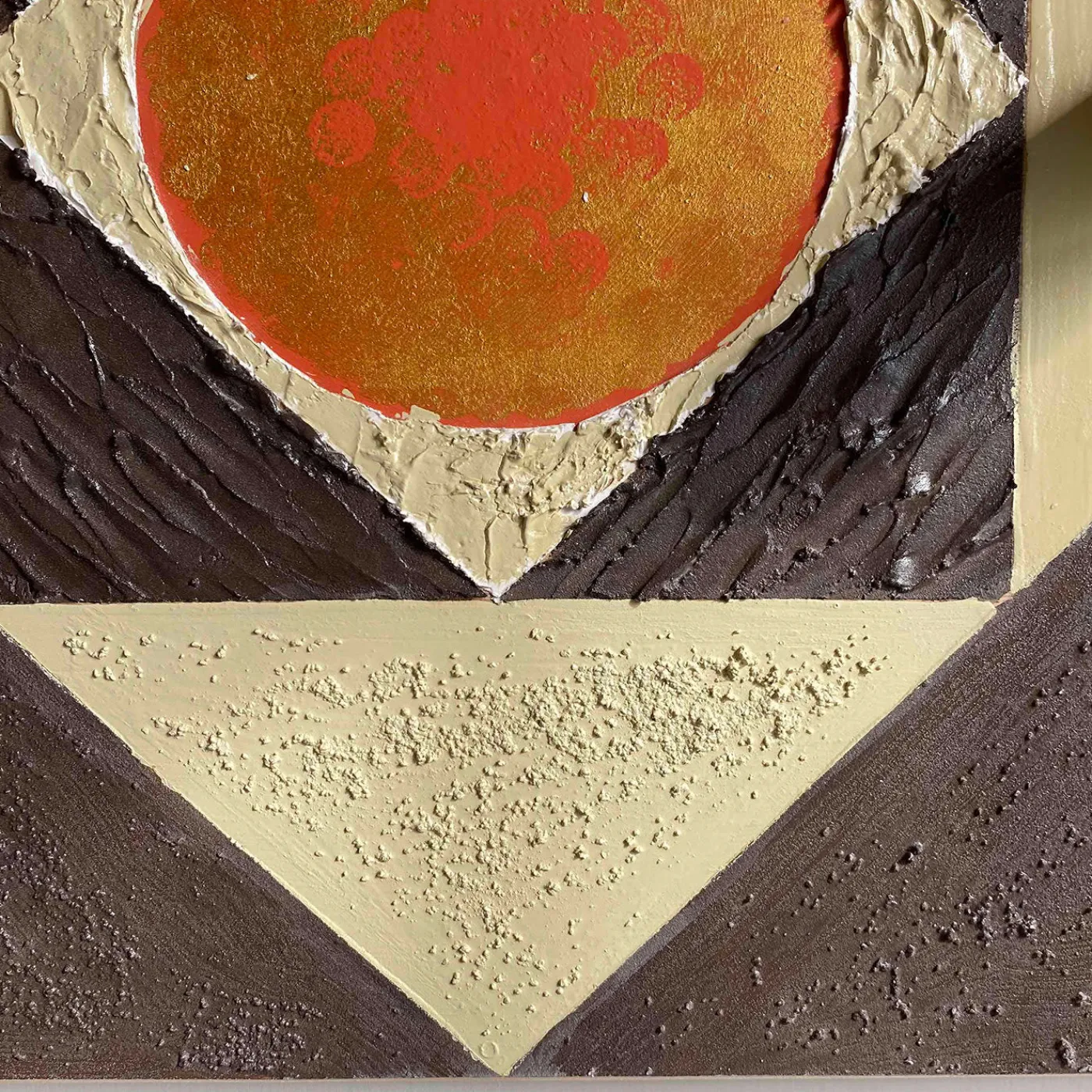 Incarnazione di ciò che esiste tra arte e design, questa stupenda opera è stata creata da Mascia Meccani nel 2020 per abbellire un interno contemporaneo. Un pezzo unico, composto da un pannello decorativo in legno dipinto e decorato a mano con figure geometriche pulite e concentriche impreziosite da stucco e sabbia, e da due appendiabiti da parete laterali abilmente realizzati a mano in legno di ciliegio. Questo pezzo può essere riprodotto in diverse dimensioni su richiesta.