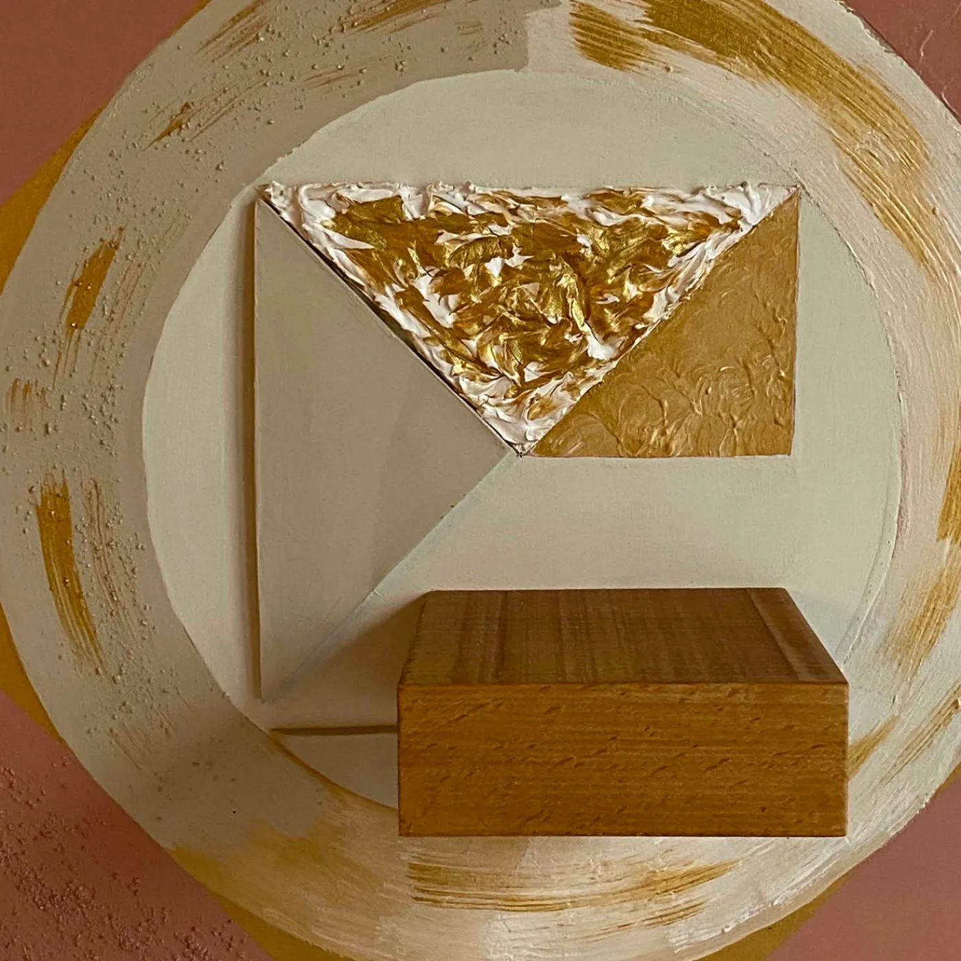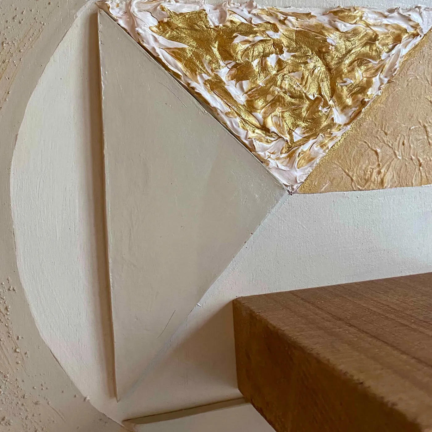 Un modo sorprendentemente inventivo di fondere arte e design, questa straordinaria opera del 2020 di Mascia Meccani è un affascinante pannello decorativo in legno a tecnica mista completato da una mensola in faggio. Interamente realizzato e dipinto a mano, presenta una calda tavolozza arricchita da stucchi, sabbia e terracotta. Questo pezzo è unico ma può essere riprodotto in diverse dimensioni su richiesta al Concierge.