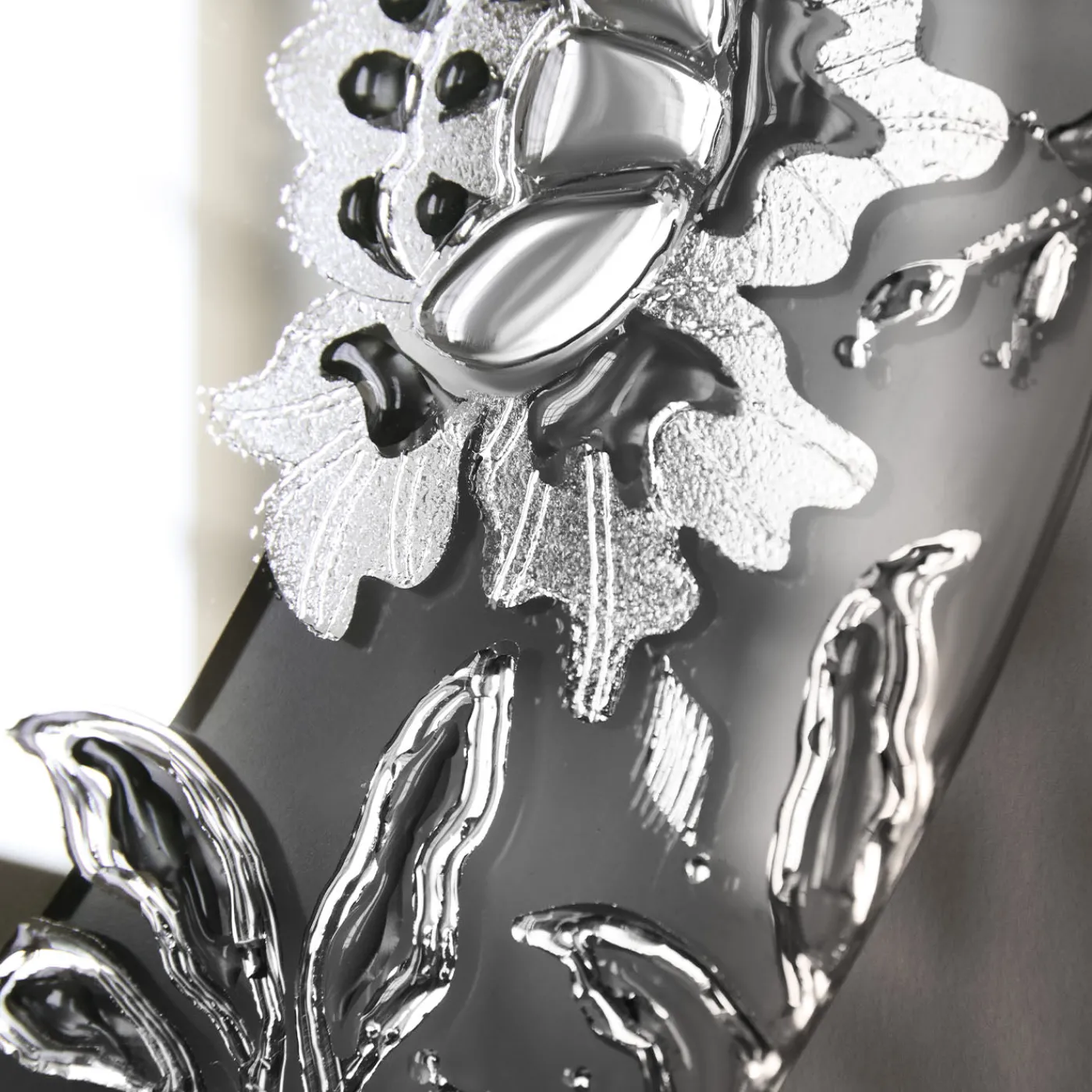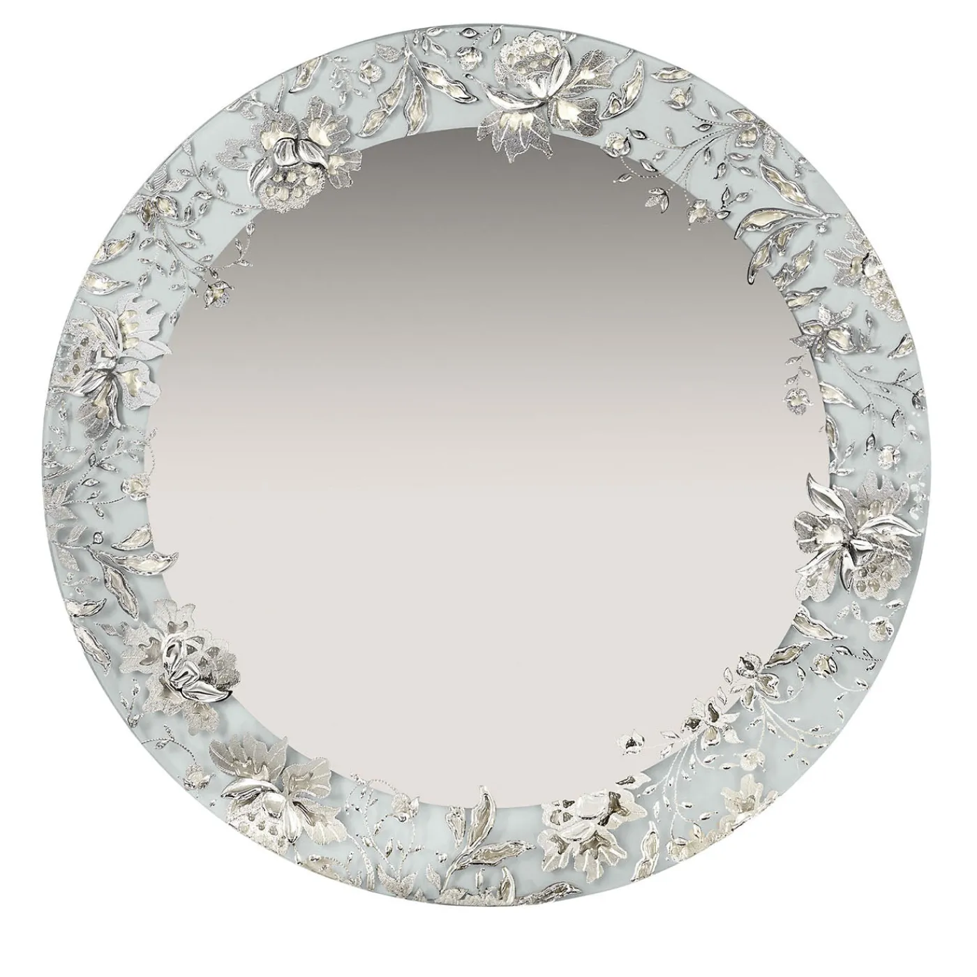 Lo specchio rotondo da parete argento Léa presenta un design elegante e intimo, ideale per spazi piccoli o vignettes decorative. Questo pezzo è completamente realizzato a mano, con variazioni uniche e sottili imperfezioni che ne esaltano il carattere artigianale. I delicati dettagli floreali del bordo dello specchio aggiungono un tocco raffinato, combinando fascino classico con un’estetica contemporanea adatta per una decorazione per la casa sofisticata.