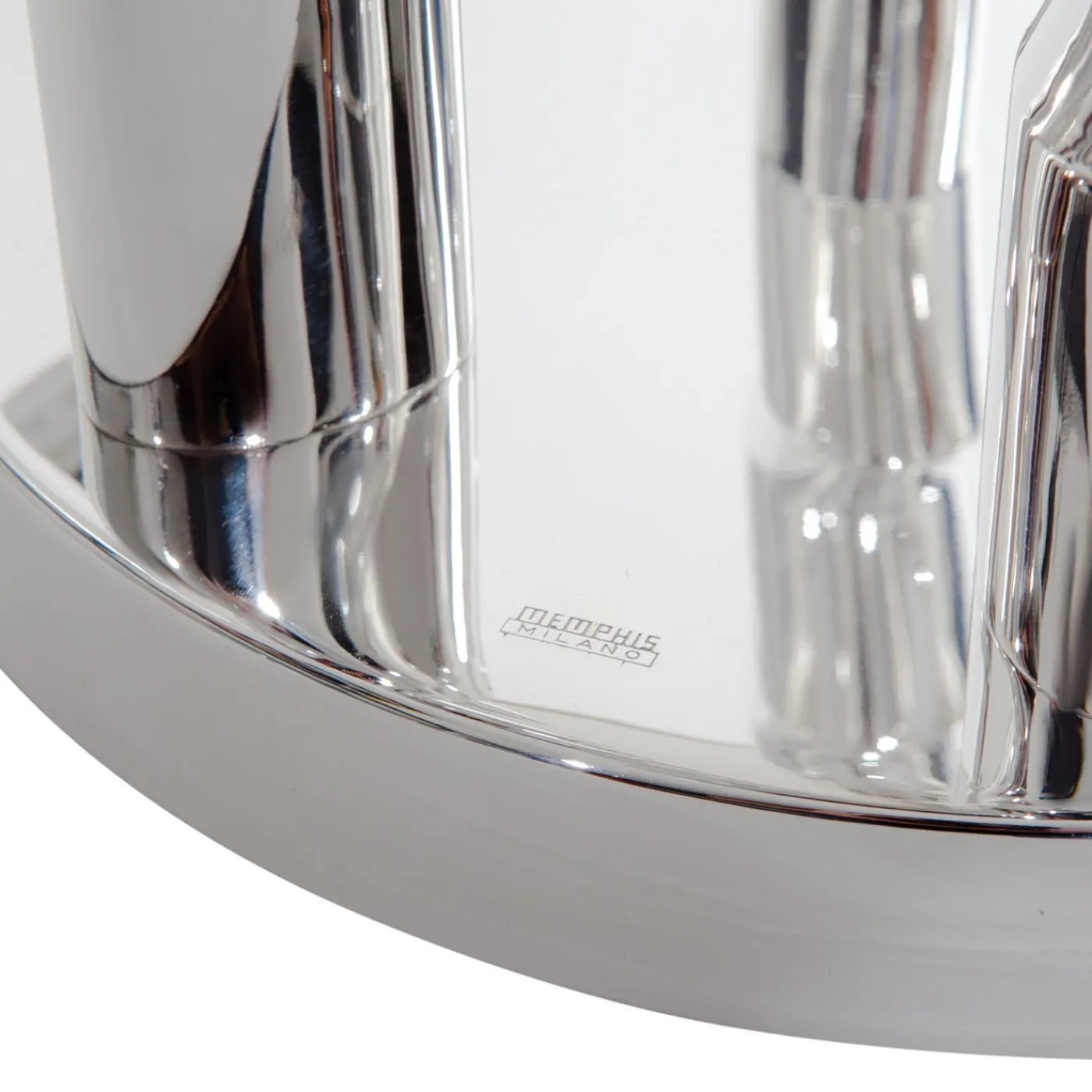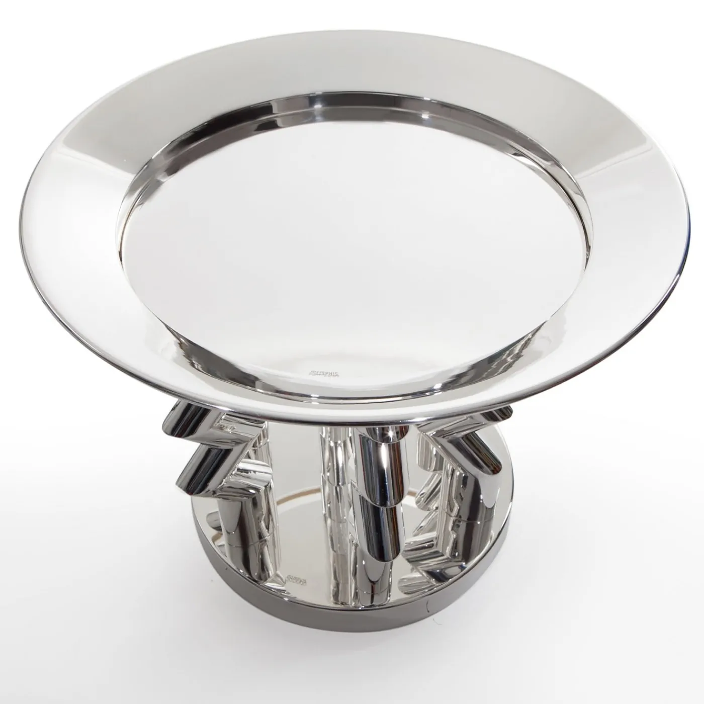 Questo affascinante centrotavola è stato progettato nel 1982 da Ettore Sottsass. La sua struttura in ottone placcato in argento comprende una base rotonda da cui si sviluppano sei elementi verticali a zig-zag che sorreggono il vassoio superiore a forma di piatto rotondo. Questo design unico è ispirato alla città esotica di Murmansk, nell’estremo nord-est della Russia. Questo elegante oggetto di decorazione funzionale è disponibile anche in argento 925 massiccio, si prega di chiedere al Concierge per dettagli e prezzi.