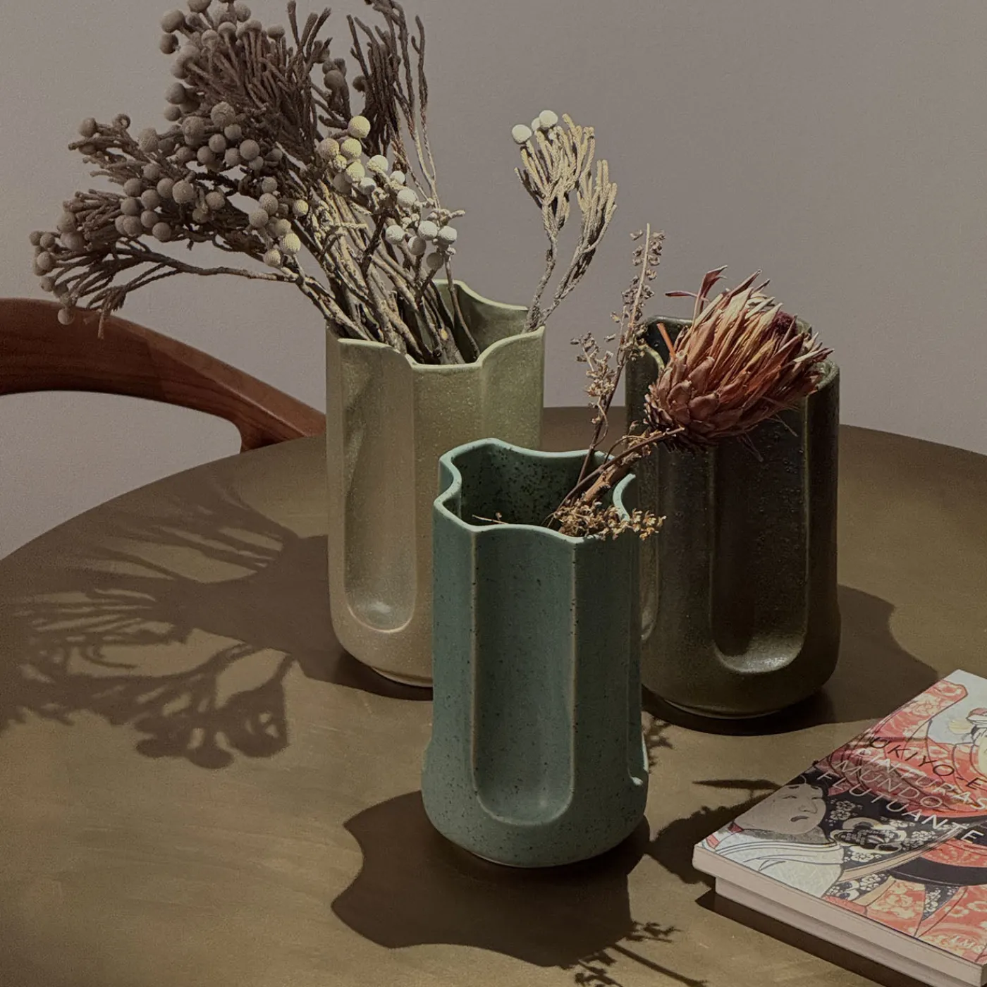 Il vaso in ceramica smaltata blu opaco Giuseppe Turquesa presenta una delicata tonalità celeste con sottili gradienti neutri e piccole macchie scure che aggiungono profondità visiva. La sua superficie opaca e la forma strutturata creano un equilibrio raffinato, rendendolo adatto a fiori freschi o secchi. Progettato per completare interni sia contemporanei che classici, aggiunge un’eleganza sofisticata e sobria a qualsiasi spazio.
