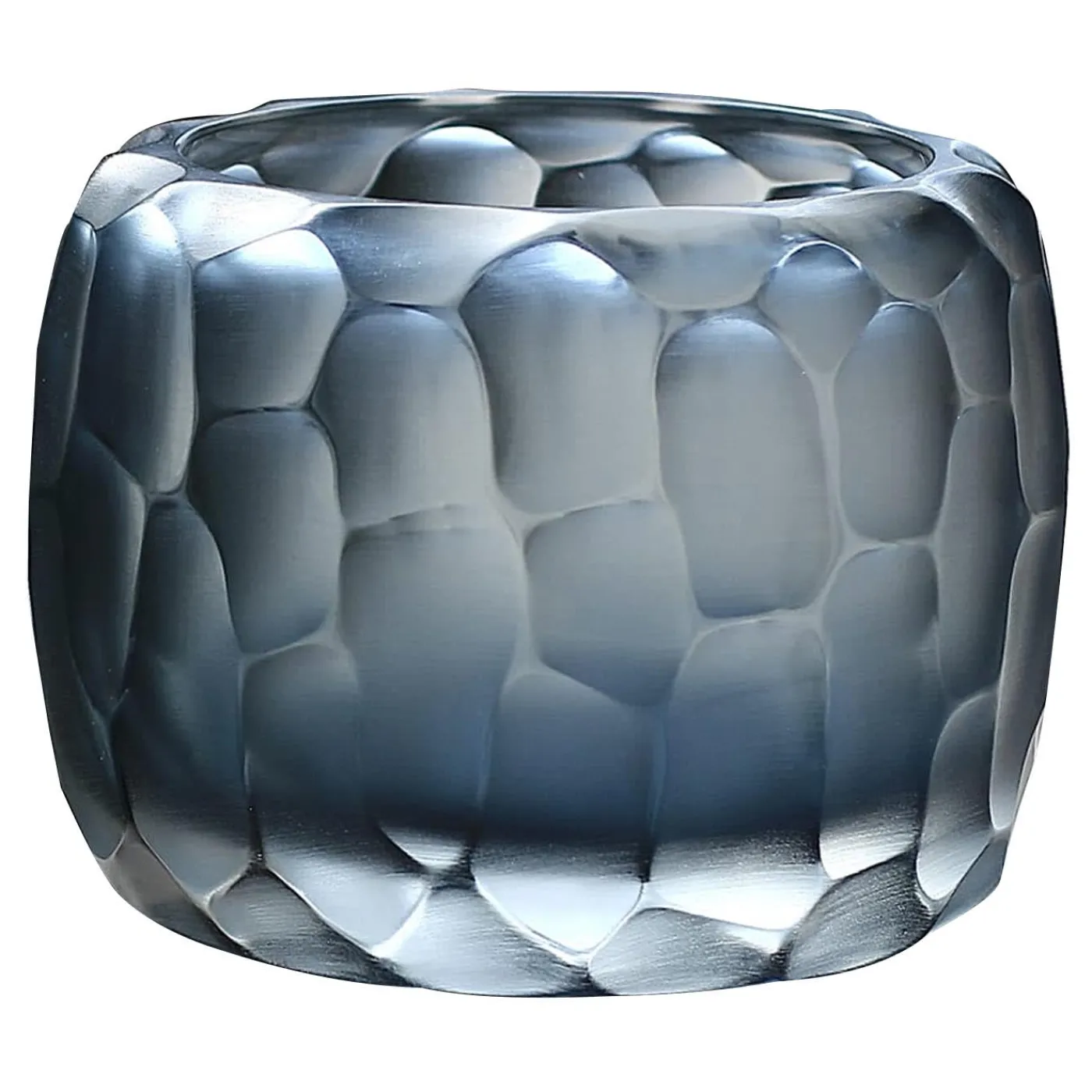 Definito da un corpo robusto e rotondo, il design di questo vaso ricorda il tipico Pozzo veneziano. Dopo il processo di soffiatura, il vaso viene lavorato a freddo con tecniche di intaglio e lucidatura che trasformano completamente la percezione visiva e tattile del vetro. È realizzato con la tecnica della Molatura, che prende il nome dalla mola utilizzata per incidere il vetro a freddo, che in italiano si chiama “Mola”. Questo vaso è unico e firmato.