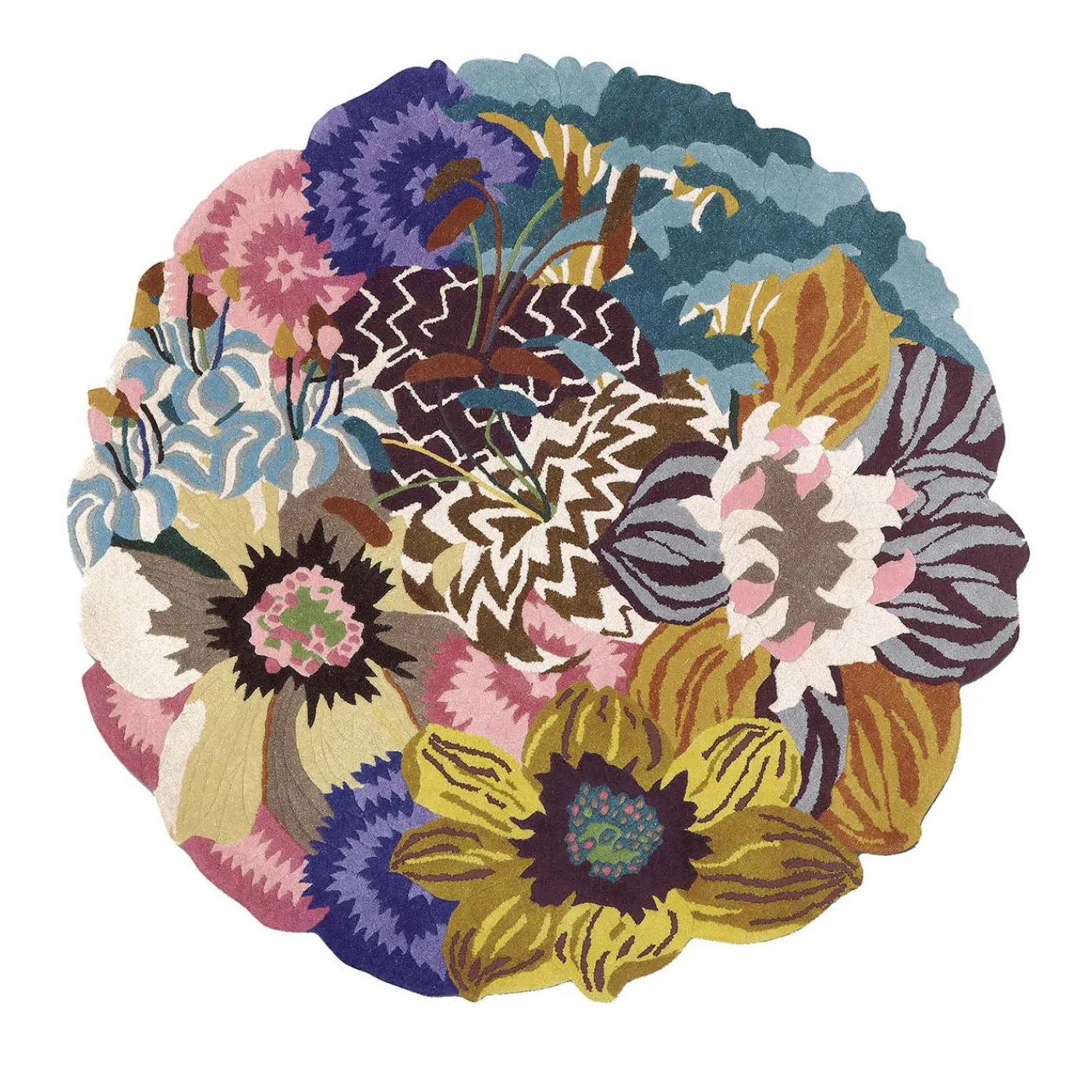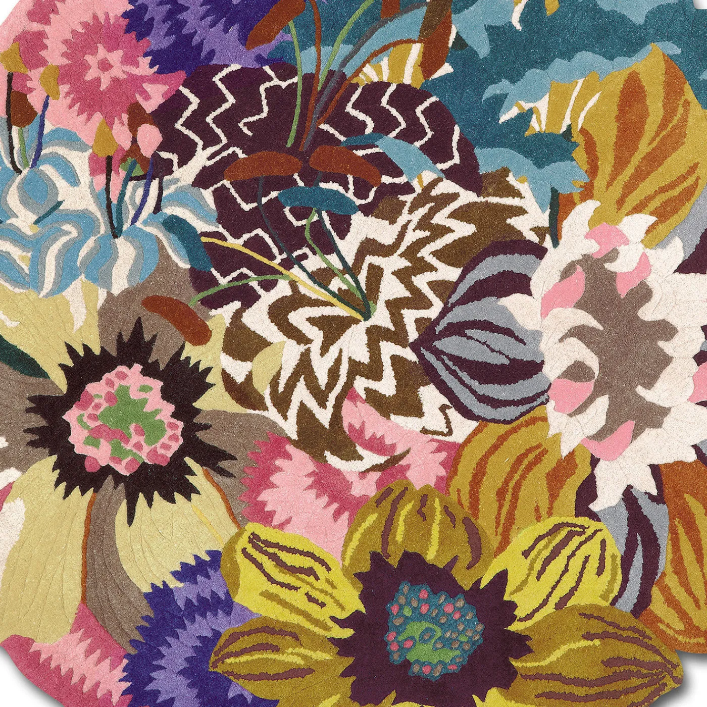 Abbagliante ed eclettico, questo superbo tappeto sarà un accento luminoso e inconfondibile in qualsiasi ingresso, bagno o camera da letto. Trasformando l’opulenza in arte, questo tappeto in pura lana vanta un’impressionante serie di fiori multicolori, da girasoli e gigli a garofani e caprifogli blu, con accenti di colore realistici che esaltano il fascino testuale e visivo del tappeto. I fiori sembrano sfuggire al bordo del tappeto per creare una forma irregolare simile a un bouquet.