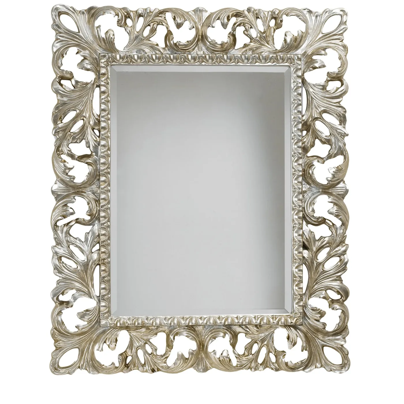 Questo splendido specchio da parete riprende in chiave moderna l’opulenza delle corti francesi del XVII secolo. Incastonato in una meravigliosa cornice di legno che vanta un intricato design classico in stile barocco accentuato da una foglia d’argento anticato, lo specchio rettangolare si distingue per i bordi smussati. Progettato per essere appeso liberamente sia in verticale che in orizzontale, a seconda dei gusti e degli interni.