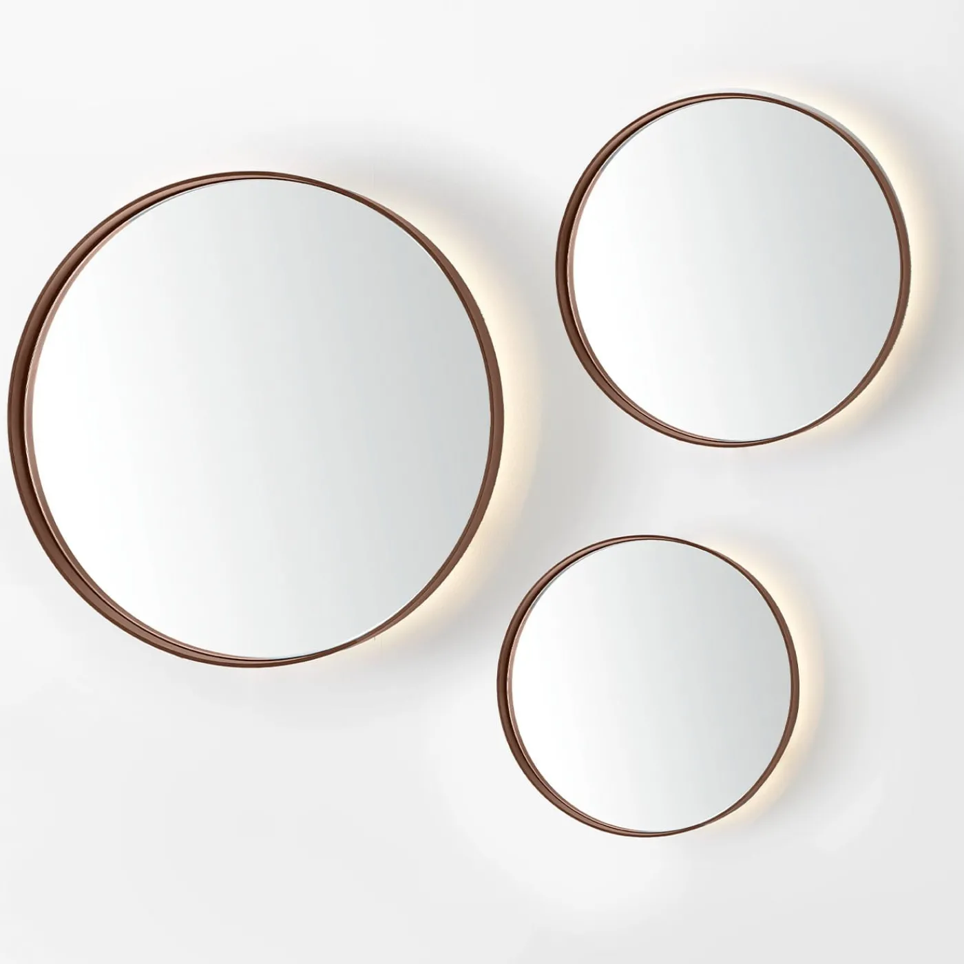 Influenze minimaliste e industriali si fondono in questo specchio da parete rotondo di sobria eleganza. Si tratta di un complemento ideale per interni contemporanei e raffinati, costituito da una cornice in ferro ad anello – proposta in una finitura effetto rame arrugginito – che abbraccia il disco centrale in vetro specchiato. È disponibile anche una variante con illuminazione a LED lungo il perimetro; per il prezzo, rivolgersi al Concierge.