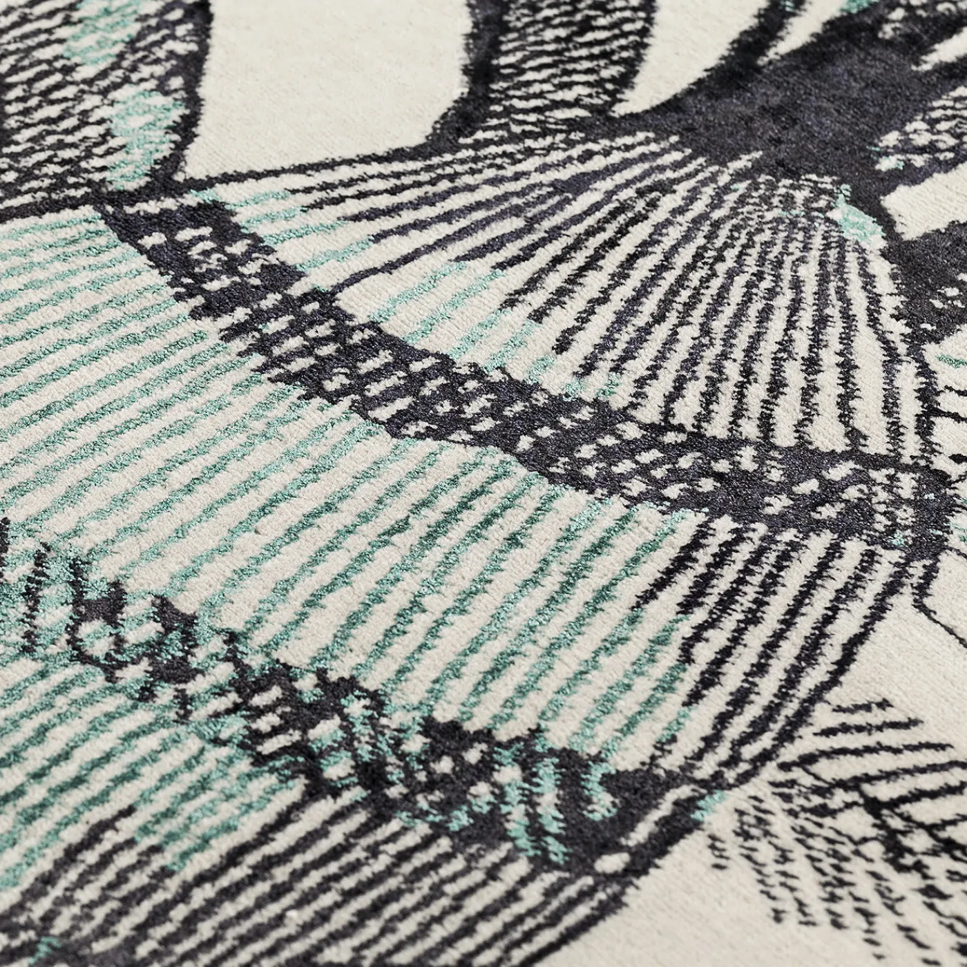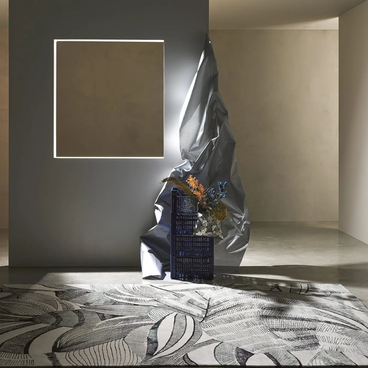 Il tappeto Profumo Arbustum di Marta Giardini presenta motivi ispirati alla botanica che evocano una vista dall’alto di prati d’erba ondeggianti. Realizzato utilizzando un’antica tecnica di tessitura, mescola seta di bambù e lana per creare intricate trame di foglie, fiori e boccioli che formano forme dinamiche simili a onde. Questo armonioso gioco di spazi pieni e vuoti incarna uno stile contemporaneo con una sofisticata eleganza naturale. Realizzato in India.