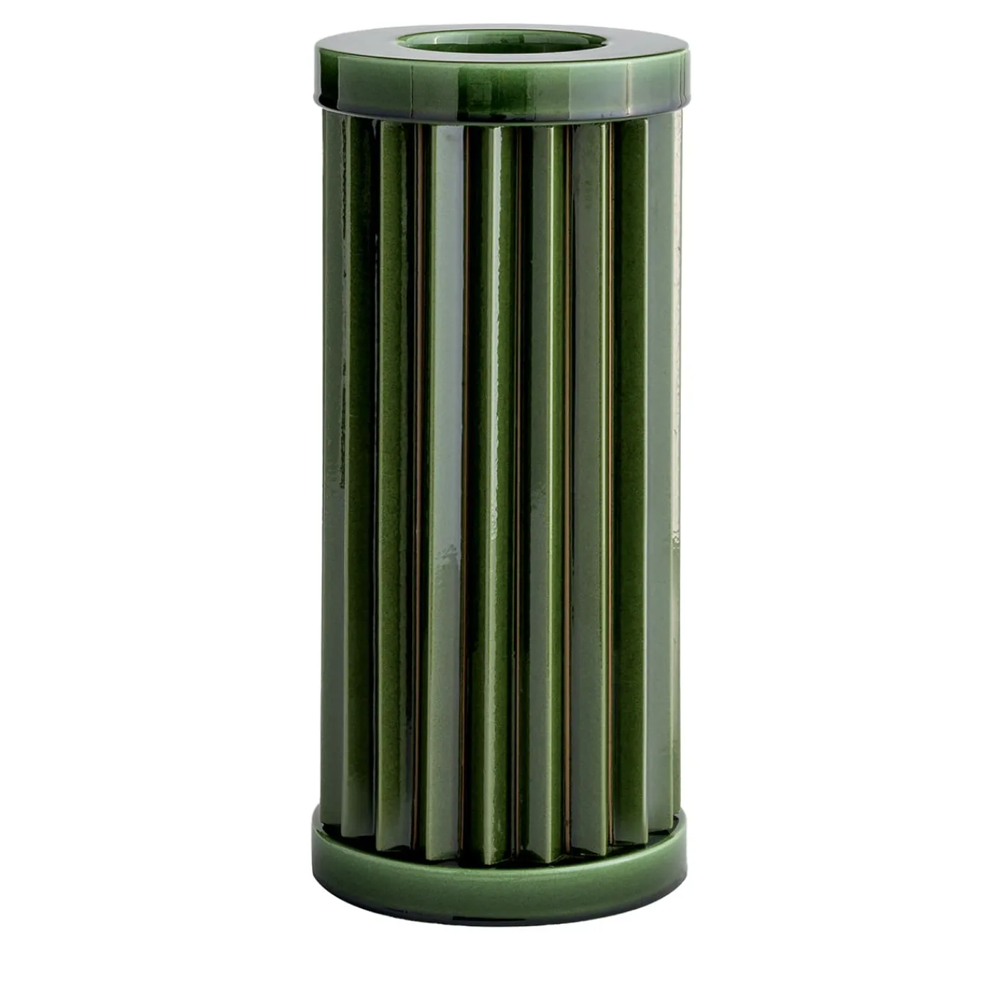 Un design unico e sofisticato, dal valore architettonico elegante e senza tempo, questo vaso appartiene alla serie di vasi scultorei Rombini, disegnati da Ronan & Erwan Bouroullec e realizzati artigianalmente in ceramica in collaborazione con Bitossi. Rifinito a mano in una tonalità verde totale dall’aspetto lucido, esalta la sua forma cilindrica plissettata. Disponibile in un’ampia gamma di colori e composizioni, consultare il catalogo Artemest per le opzioni.