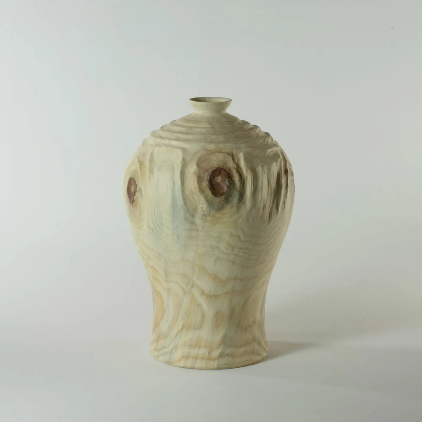 Questo singolare vaso faticosamente intagliato a mano da un unico blocco di legno di araucaria evoca le eleganti atmosfere dell’antica Corea con la sua forma tradizionale. Le sue particolari volute e venature sono enfatizzate dalla tecnica Groove FTG (acronimo di Follow The Grain), in cui le scanalature seguono le venature naturali, completando il disegno.