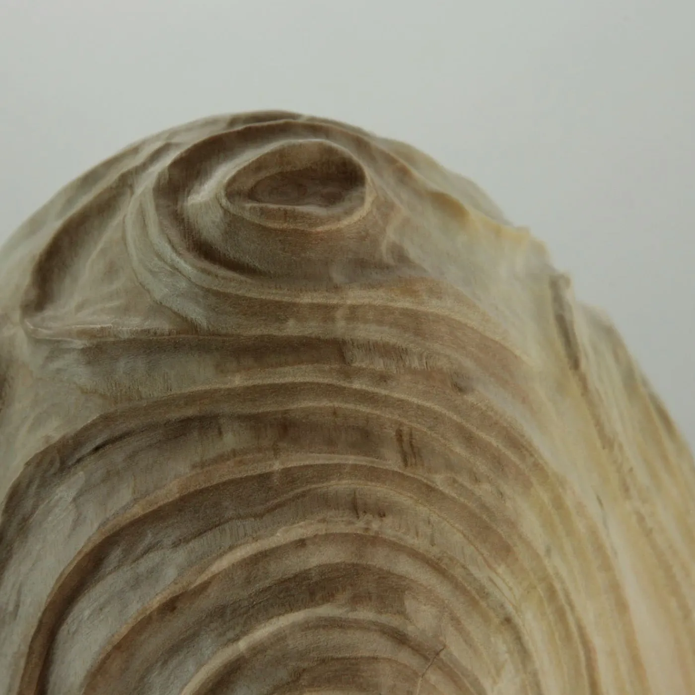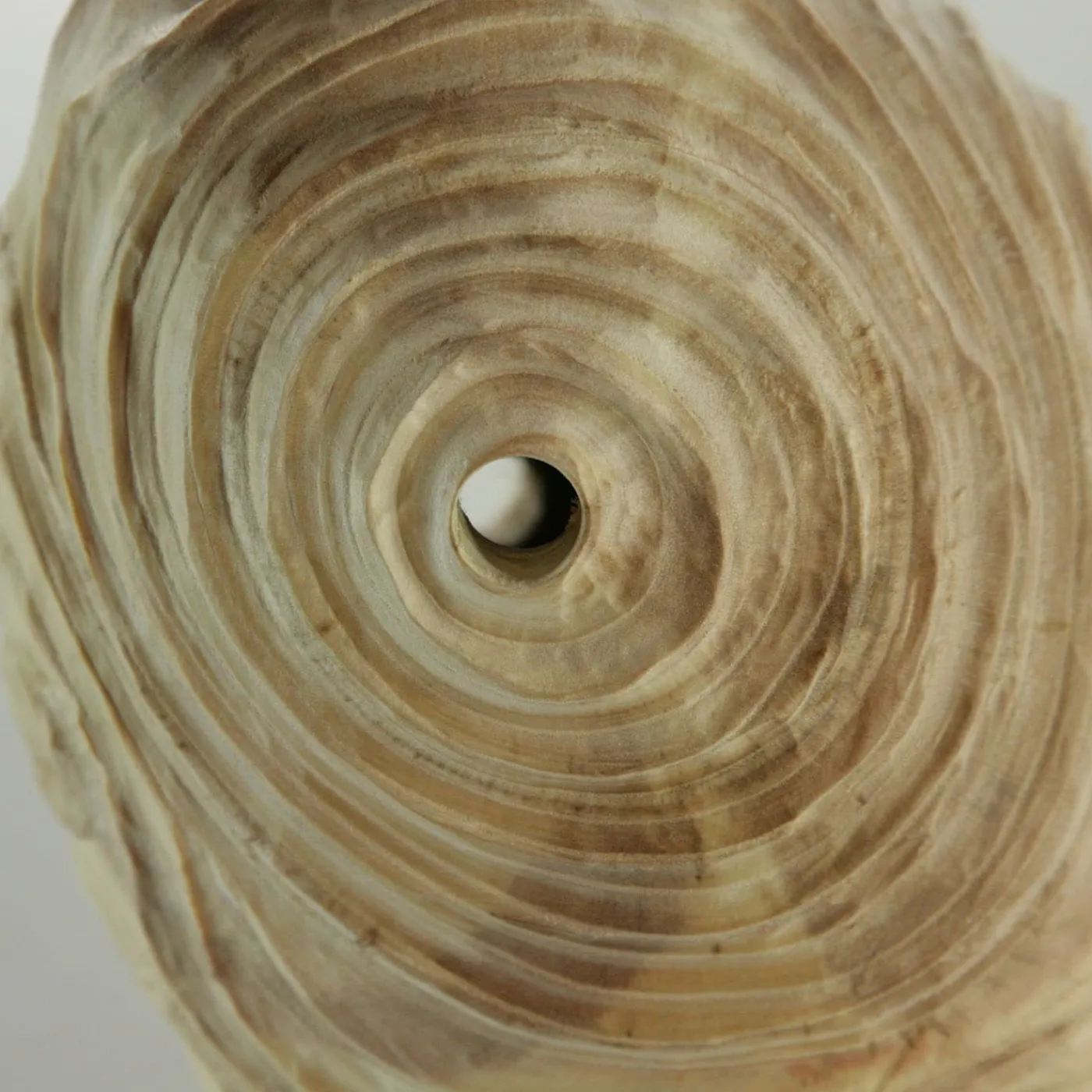 Un ibrido tra una scultura e un vaso con piccoli fori in cui inserire fiori secchi a gambo singolo, questo design della giocosa collezione The Impossiballs distilla puro dinamismo. Le sinuose traiettorie disegnate dalle sue scanalature seguono minuziosamente le venature naturali del legno, una speciale tecnica di intaglio che mira a celebrare ciò che la natura crea spontaneamente.