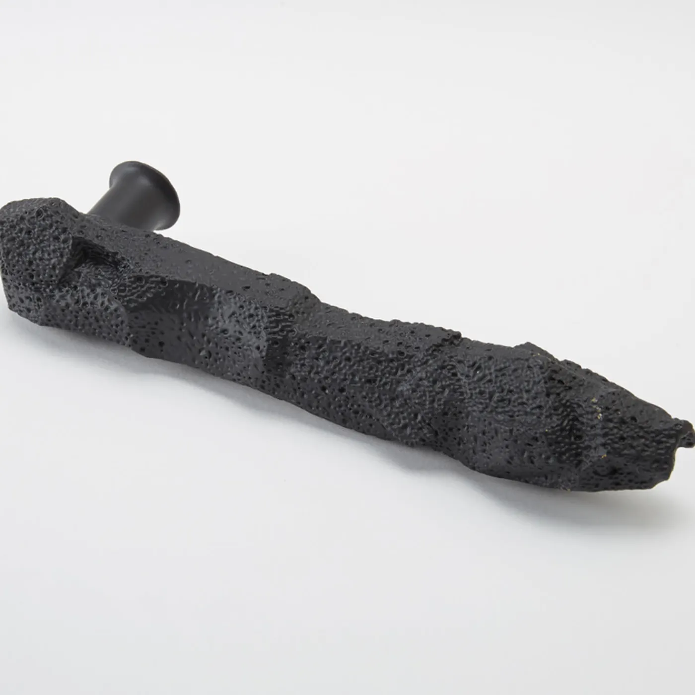 Parte della serie di maniglie per porte Lavica, che riproduce minuziosamente il fascino della pietra lavica, questa preziosa maniglia è abilmente realizzata a mano in alluminio con finitura nera e una superficie strutturata e porosa di grande impatto visivo. Disegnata da Nicole Valenti, aggiungerà un accento singolare a qualsiasi arredamento.