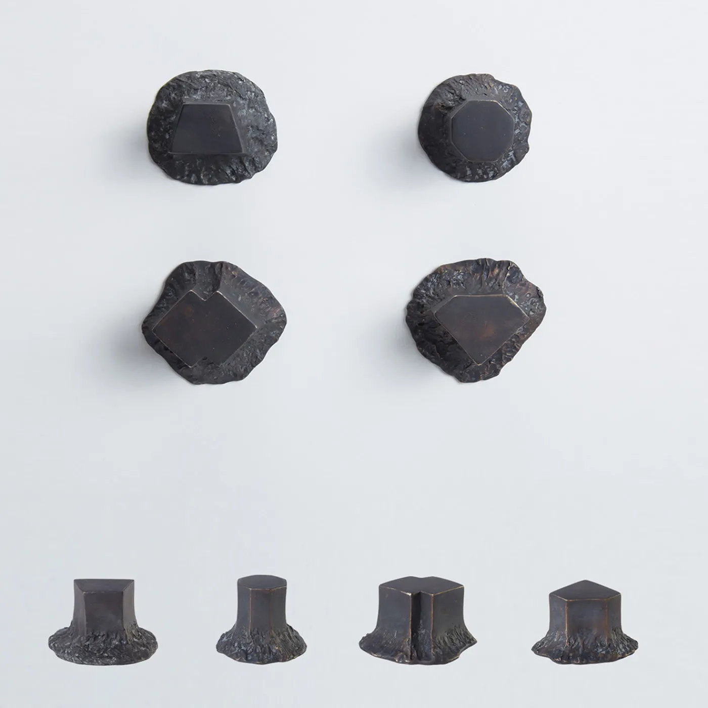La forma intrigante di questo pomello, che ricorda il tronco di un albero o un vulcano, unisce praticità ed estetica, efficienza e fascino contemporaneo. Parte della serie Solido, disegnata da Nicole Valenti, è realizzata minuziosamente a mano in ottone nero acidato, con una texture audace e accattivante.
