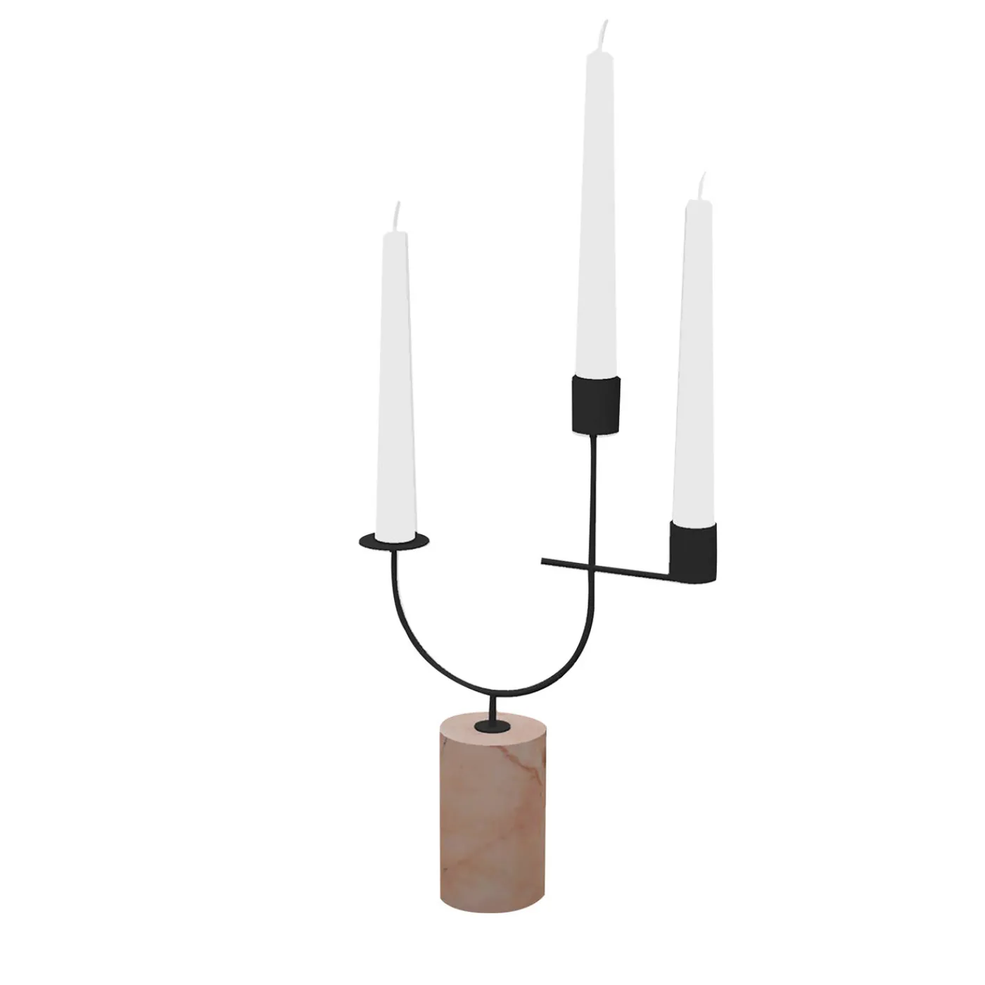 Questo splendido design appartiene alla serie di portacandele Equilibrista, ispirata a un seducente concetto di equilibrio asimmetrico. Caratterizzata da una dinamica combinazione di altezze, la struttura in metallo laccato nero con tre candelieri è sostenuta da una base cilindrica in marmo Pink Portogallo, che aggiunge un fascino lussureggiante a questo design accattivante. Disponibile in diversi tipi di marmo e in altre lacche metalliche su richiesta, si prega di chiedere al Concierge per i dettagli.