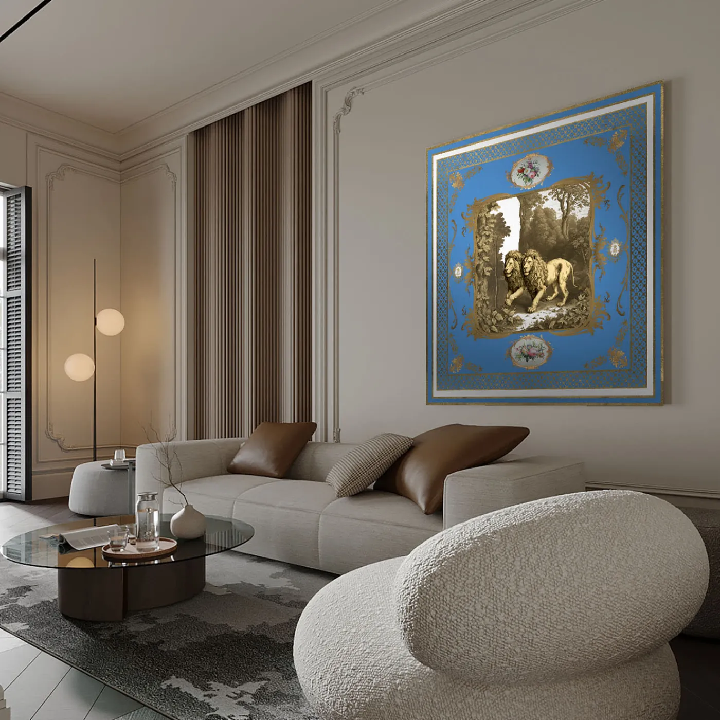 Questo squisito pannello da parete fonde l’arte classica con l’artigianato contemporaneo. Stampato su alluminio Orobond, è arricchito da polvere d’oro applicata a mano, che aggiunge un tocco regale alla sua intricata composizione. La tecnica del rilievo crea un sorprendente effetto tridimensionale, rendendo l’opera visivamente dinamica. La finitura lucida esalta il gioco di luci e ombre, mettendo in risalto le texture delicate e i dettagli ornamentali. Un pezzo raffinato per ogni spazio sofisticato.