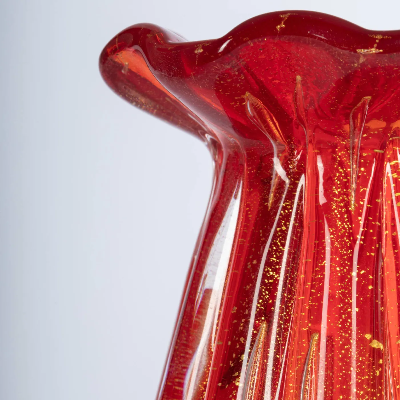 Questo set di tre vasi di dimensioni assortite (cm 13x18H, 10x14H e 12x10H) sfoggia un design sorprendente in cui convergono l’arte della soffiatura del vetro, l’opulenza e il glamour. La loro caratteristica texture a balze – ottenuta grazie alla tradizionale tecnica del balloton – amplifica la qualità scintillante dei granelli d’oro 24 carati intrappolati nel vetro che circondano anche le bolle d’aria per accentuarne il valore decorativo.