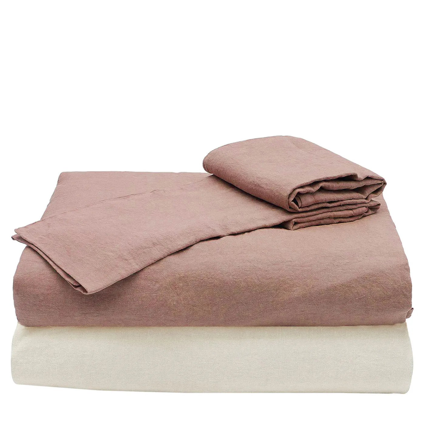 Provate l’eleganza di questo set da letto estivo rosa vintage, realizzato a mano con il lino più pregiato. Comprende un lenzuolo di sopra e federe abbinate in un sofisticato rosa vintage, completati da un lenzuolo bianco per materassi fino a 30 cm di profondità. La tonalità delicata è perfetta per le stanze dai colori neutri, mentre il lino leggero (165 gr/mq) offre un tocco confortevole e croccante per una sensazione di lusso. Disponibile in varie misure, chiedete al concierge per ulteriori dettagli.