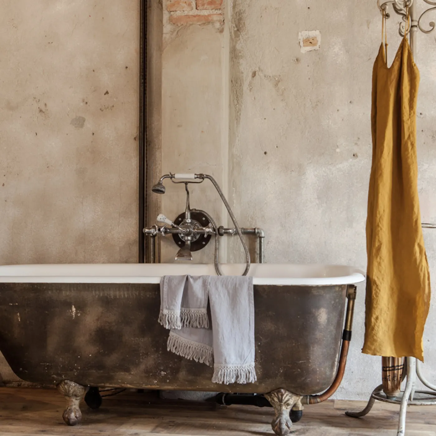 Eleganza sobria e fascino senza tempo sono le caratteristiche dei pezzi Once Milano, come questo set di due asciugamani realizzati a mano in lino di alta qualità tinto in una vivace tonalità di senape per aggiungere un tocco di colore a qualsiasi bagno. Il set comprende un asciugamano piccolo (40 x 60 cm) e uno grande (60 x 100 cm), entrambi caratteristici per le eleganti frange e il morbido lino di medio peso (280 gr/mq).