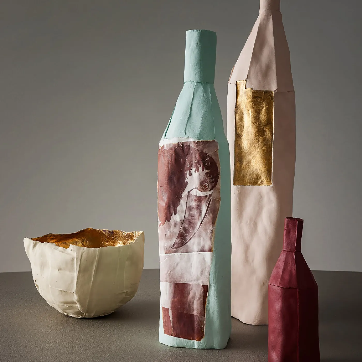 Questa bottiglia fatta a mano, unica nel suo genere, sarà uno splendido centrotavola per qualsiasi arredamento moderno o tradizionale. Un pezzo di arredamento funzionale, realizzato in argilla di carta, un materiale che combina fibre e polpa di carta nell’impasto della ceramica per creare texture uniche di forte qualità tattile. Ogni creazione di Paola Paronetto è unica. Lievi variazioni di forma, colore e dimensione sono da considerarsi garanzia di autenticità e valore. Sono rifinite con smalti satinati atossici. Anche se molto raramente, è possibile che si verifichino perdite dopo una lunga esposizione all’acqua. È quindi consigliabile testarne la resistenza all’acqua prima di utilizzarli su superfici delicate. Non devono essere utilizzati come utensili da pranzo. I pezzi bianchi possono essere lavati con acqua o prodotti igienizzanti, mentre i pezzi colorati devono essere trattati con maggiore delicatezza e puliti con uno spolverino di piume o un panno morbido, asciutto o inumidito molto leggermente con acqua.