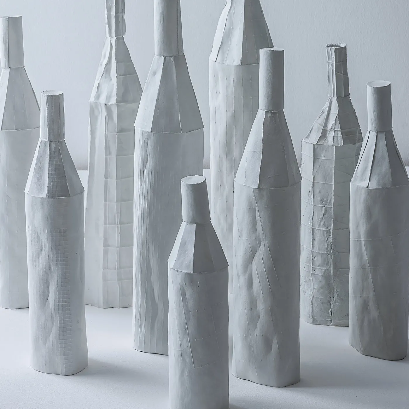 Ispirata alle forme degli oggetti quotidiani, la collezione Cartocci presenta oggetti realizzati a mano in paper clay, una speciale miscela di argilla e fibre naturali che presenta una texture unica e leggera. Questa scultura ha la forma di una bottiglia stilizzata, con un cilindro alto e un collo affusolato e una superficie liscia in un delicato colore azzurro. Un’aggiunta sorprendente a una consolle o a un tavolino in un arredamento moderno, questo oggetto sarà un regalo di benvenuto o un regalo di nozze molto apprezzato. Ogni creazione di Paola Paronetto è unica. Lievi variazioni di forma, colore e dimensione sono da considerarsi una garanzia di autenticità e valore. Sono rifinite con smalti satinati atossici. Anche se molto raramente, è possibile che si verifichino perdite dopo una lunga esposizione all’acqua. È quindi consigliabile testarne la resistenza all’acqua prima di utilizzarli su superfici delicate. Non devono essere utilizzati come utensili da pranzo. I pezzi bianchi possono essere lavati con acqua o prodotti igienizzanti, mentre i pezzi colorati devono essere trattati con maggiore delicatezza e puliti con uno spolverino di piume o un panno morbido, asciutto o inumidito molto leggermente con acqua.