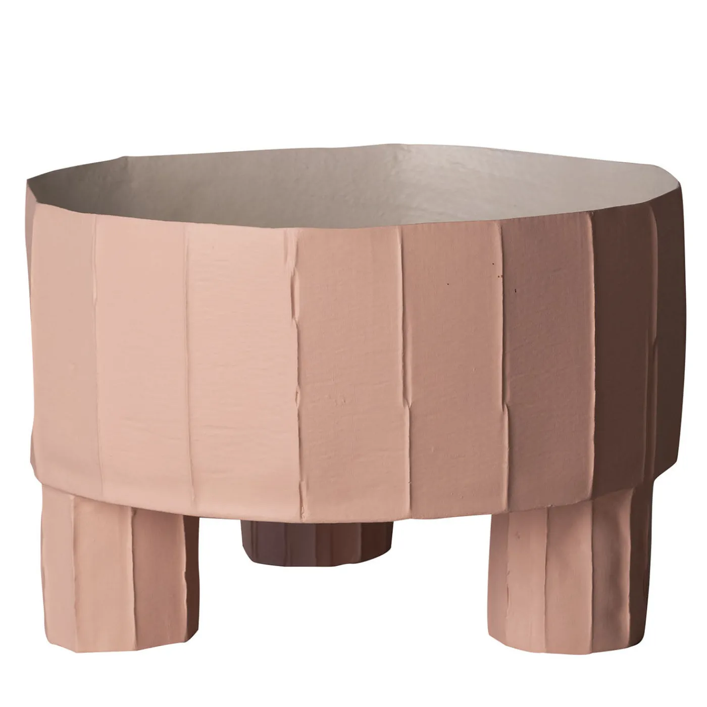 Questo centrotavola in paper clay si distingue per la sua silhouette scultorea e il delicato tono cipria, arricchito da superfici irregolari e materiche che ne esaltano l’unicità. Realizzato artigianalmente con un processo meticoloso, ogni esemplare presenta leggere variazioni in forma e dimensioni, evidenziando il carattere esclusivo del pezzo. La struttura arrotondata, sostenuta da tre solide gambe, combina un’estetica organica con linee contemporanee, ideale per valorizzare interni ricercati con un tocco artistico.