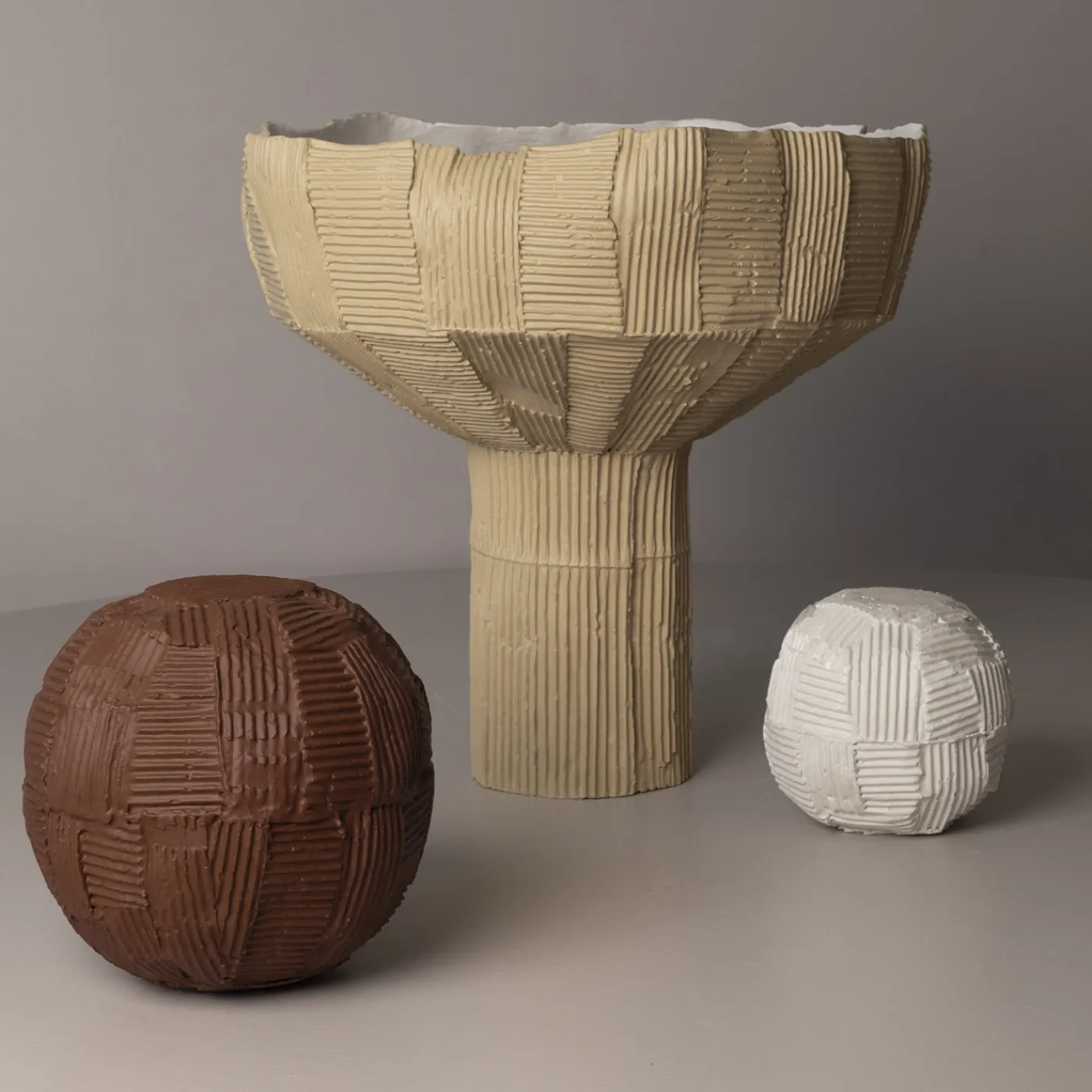 Sfero reinventa la classica forma sferica con un design organico e irregolare, caratterizzato da una superficie testurizzata che richiama la buccia di un frutto o i complessi solchi di un pianeta. Il suo motivo tattile invita all’osservazione ravvicinata, conferendo all’oggetto una presenza discreta ma affascinante, perfetta per arricchire gli spazi interni moderni con un tocco artistico.