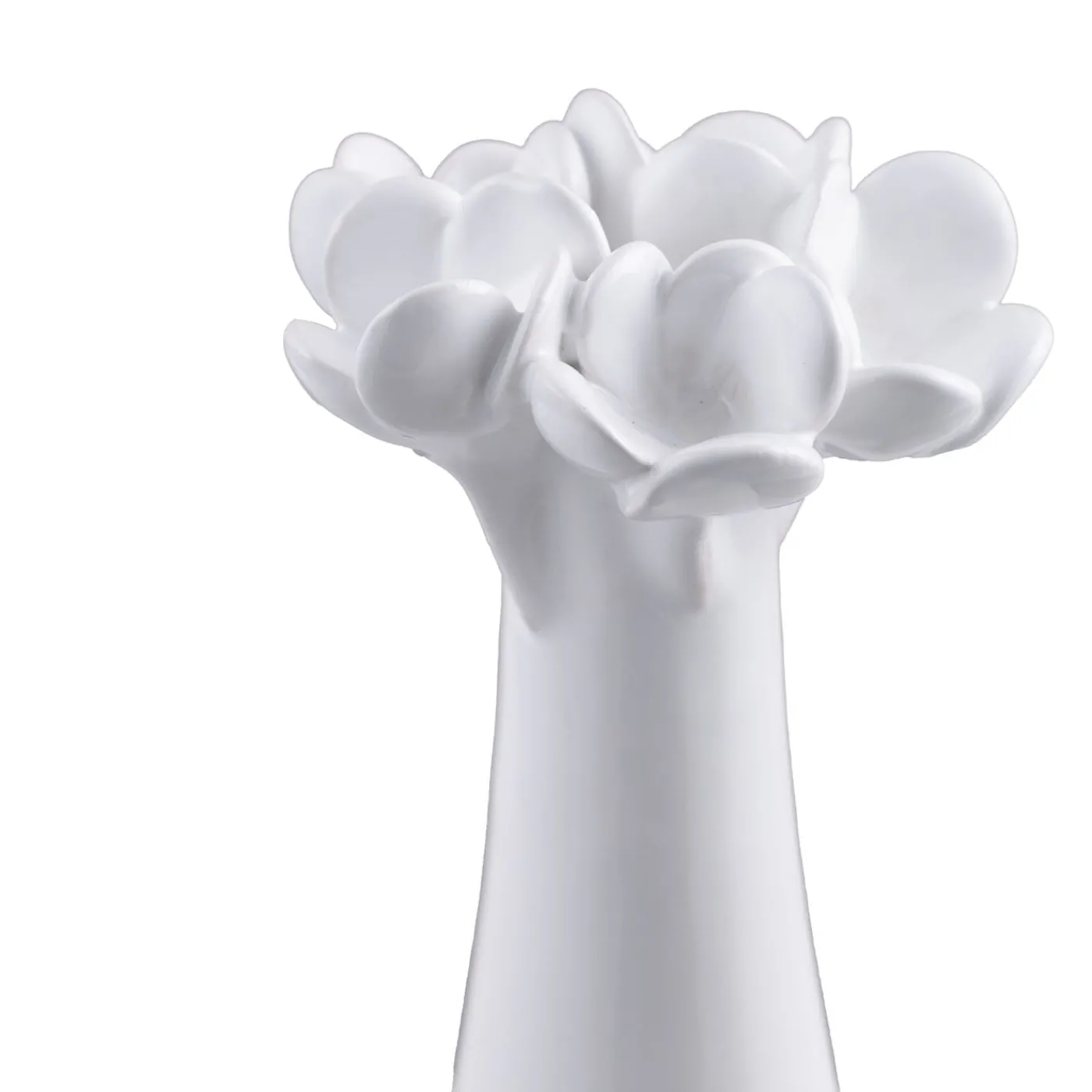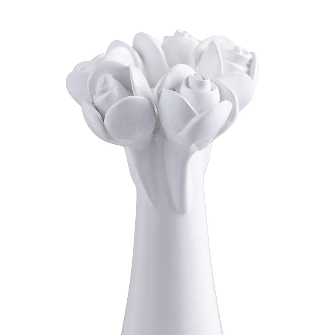 Questo portacandele alto è ornato da delicati boccioli di rosa bianca lucida. Questo pezzo elegante combina la bellezza floreale senza tempo con un design elegante, creando un ambiente sofisticato perfetto per qualsiasi ambiente. Ideale per aggiungere un tocco romantico o raffinato a qualsiasi arredamento.