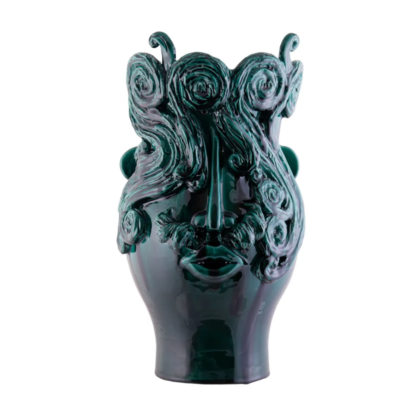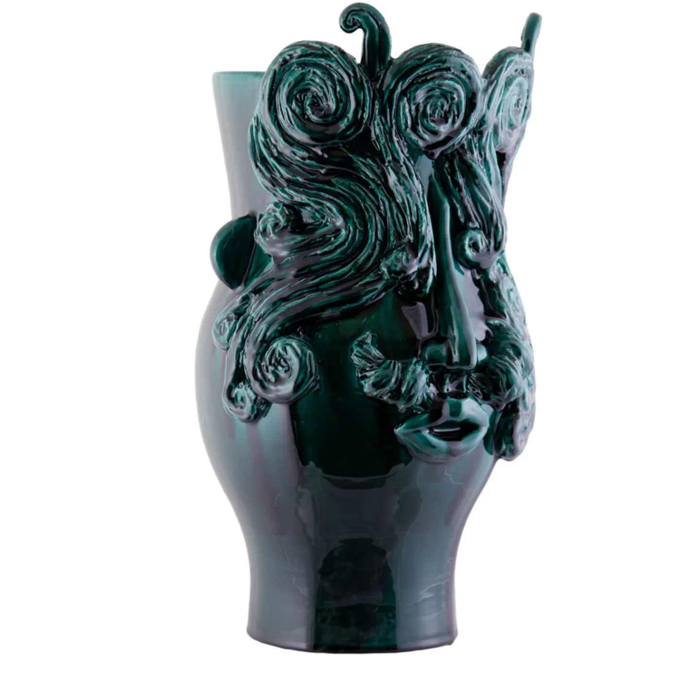 Questi due vasi rappresentano gli Sposi in Verde, che viaggiano lontano, ma il loro cuore è in Sicilia, tra i capperi di Salina e le olive del Belice. Camminano in coppia, ma a volte possono essere separati. Per ulteriori informazioni, contattare il Concierge.
