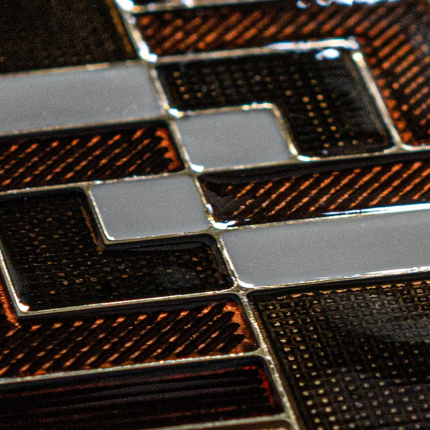 La scatola Cloisonné incarna un’eleganza sofisticata, fondendo senza soluzione di continuità una finitura ricca di texture con una placca di smalto lucido. Realizzata in splendido legno di bubinga, questa scatola rettangolare presenta un intricato disegno geometrico in una calda tavolozza di marroni, cappuccini e caramelli. La sua estetica risuona di grazia colta, riflettendo uno stile milanese distintivo che valorizza qualsiasi spazio interno. Perfetta per organizzare gli oggetti più cari o come elemento di spicco nell’arredamento della casa, questa scatola è un oggetto d’arte funzionale che si armonizza perfettamente con vari temi di design.
