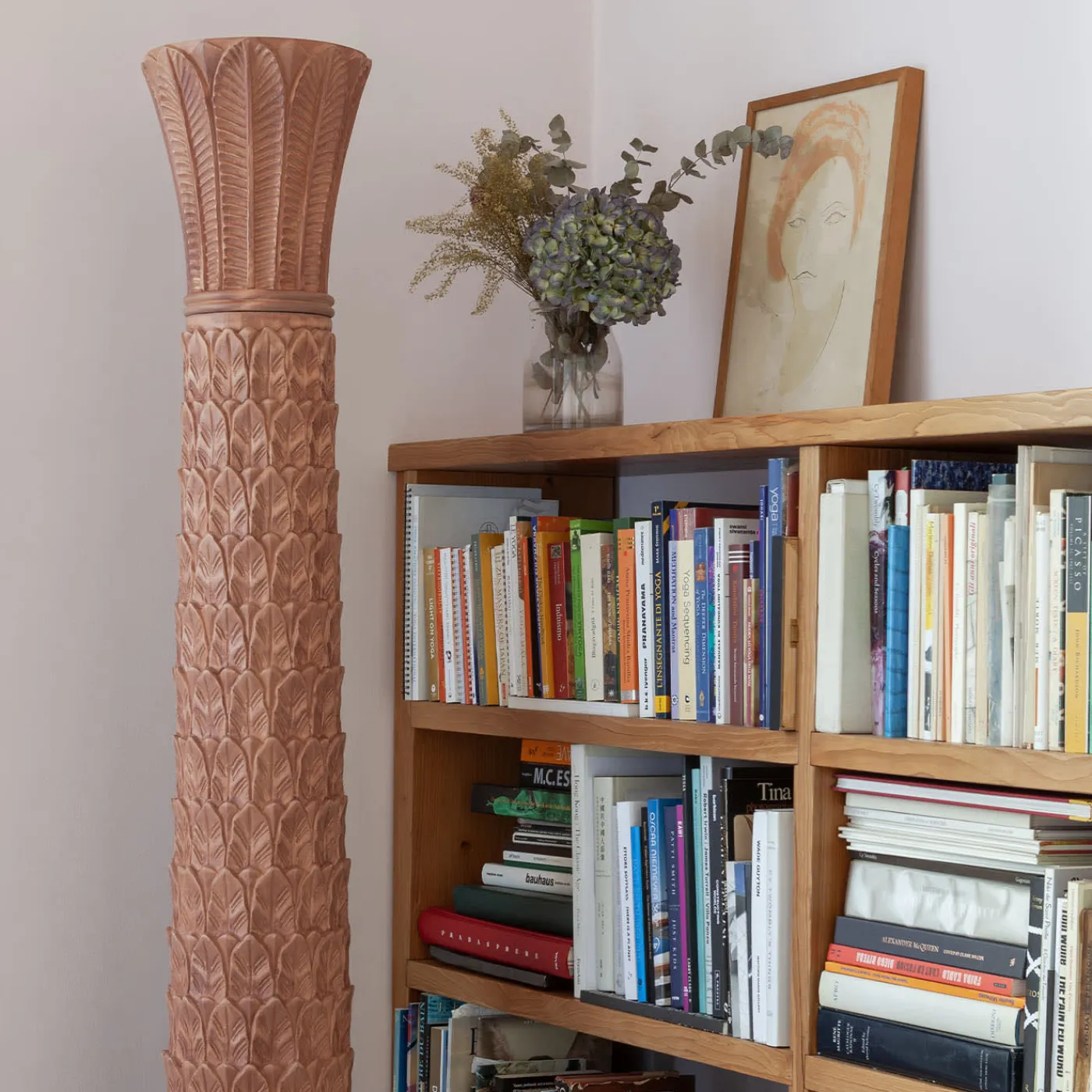 Delicata e raffinata, questa colonna decorativa fonde tecniche moderne con tradizioni secolari di lavorazione del legno. Il suo stile singolare trae ispirazione dall’Art Déco degli anni Venti e dall’arte rinascimentale ed egizia, con colori ispirati alla Basilica di San Francesco d’Assisi. Realizzato a mano in legno massiccio tinto di rosa, può ossidarsi nel tempo creando una patina. Disponibile anche in altre finiture, contattare il Concierge per ulteriori informazioni. Adatto solo per interni.