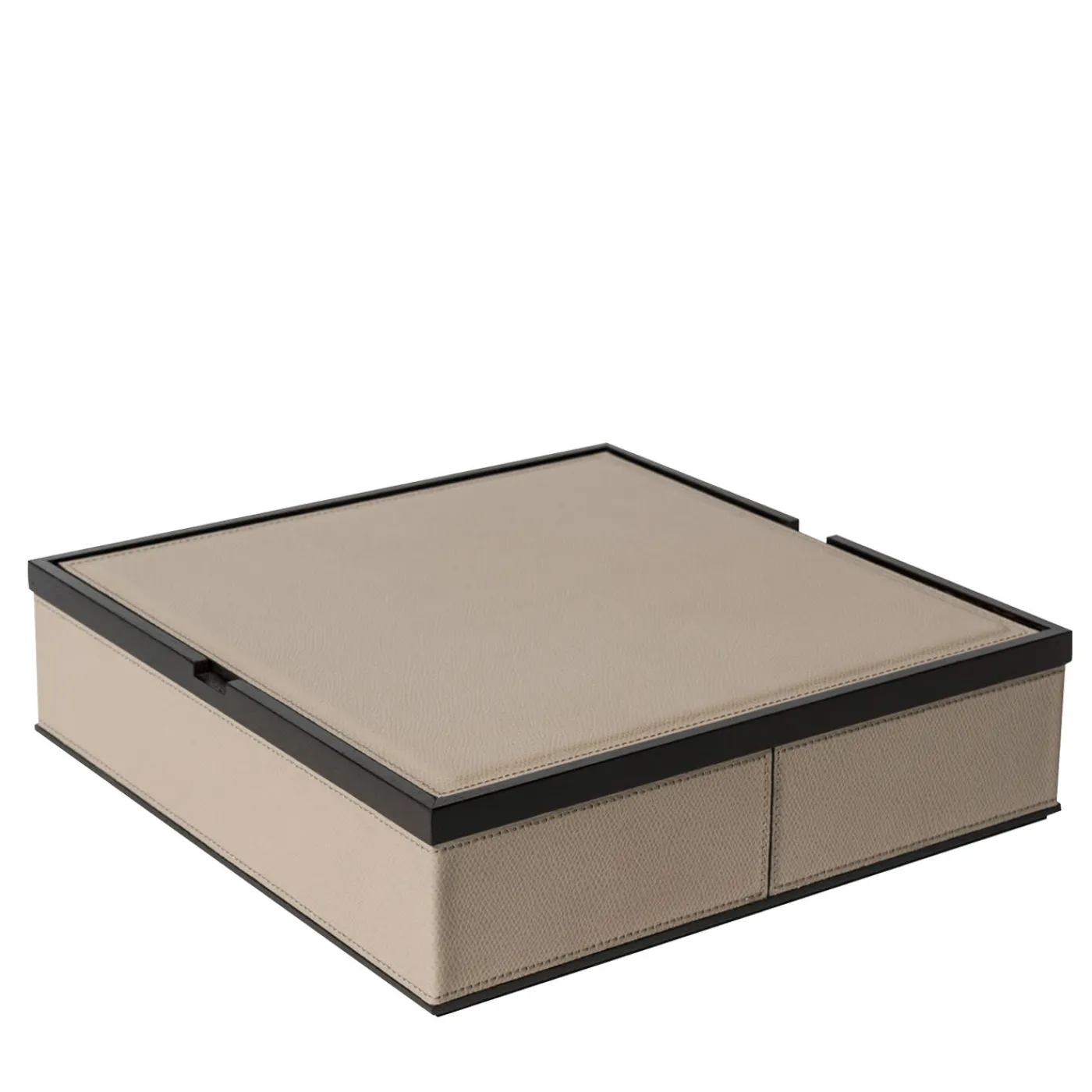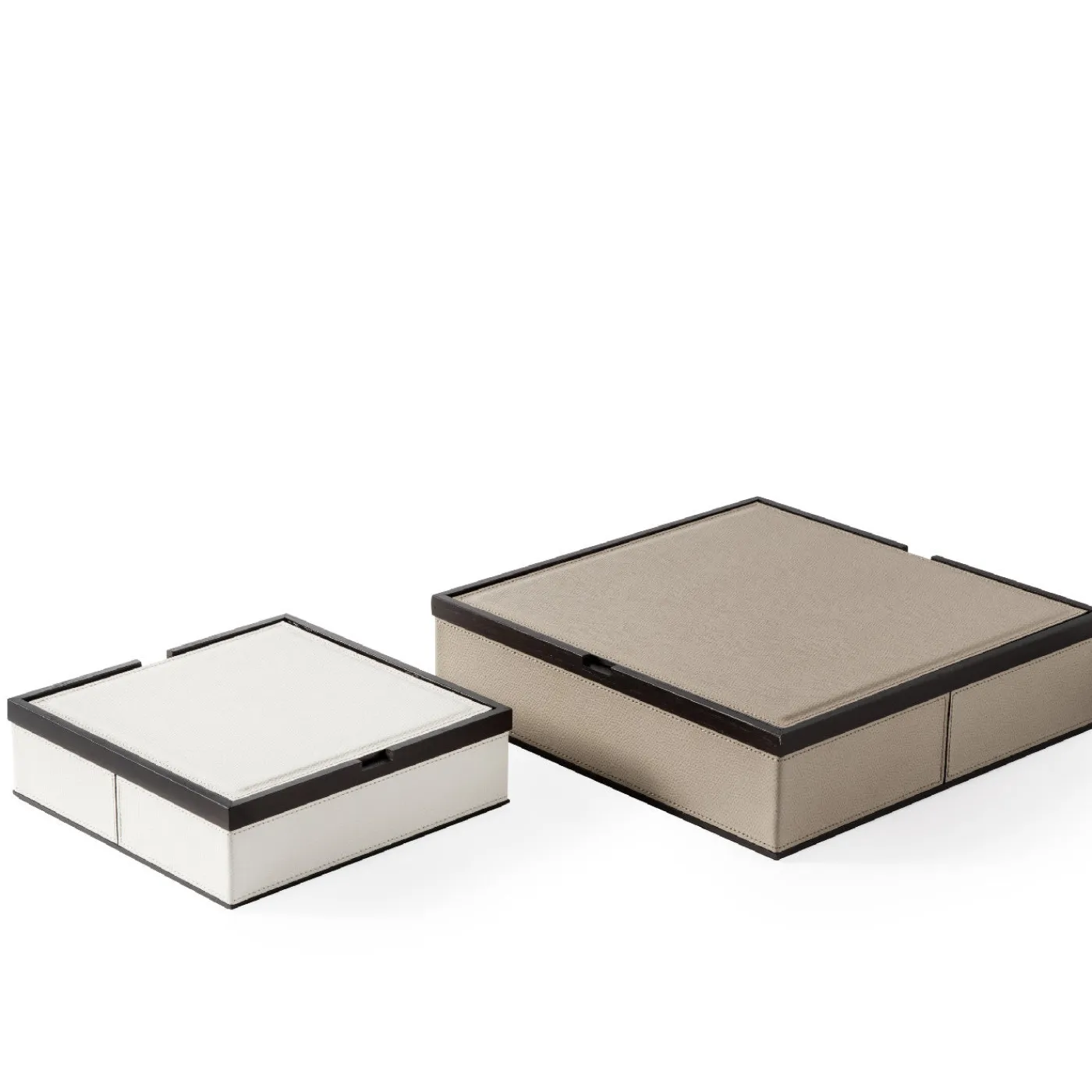 Questa bellissima scatola è realizzata in rovere con finitura wengé e rivestita in pelle per un look sofisticato ed elegante per la casa o l’ufficio. Questa scatola bassa e quadrata con un pratico coperchio è disponibile in due diverse dimensioni ed è personalizzabile in vari pellami e colori. Perfetta per custodire documenti o carte importanti.